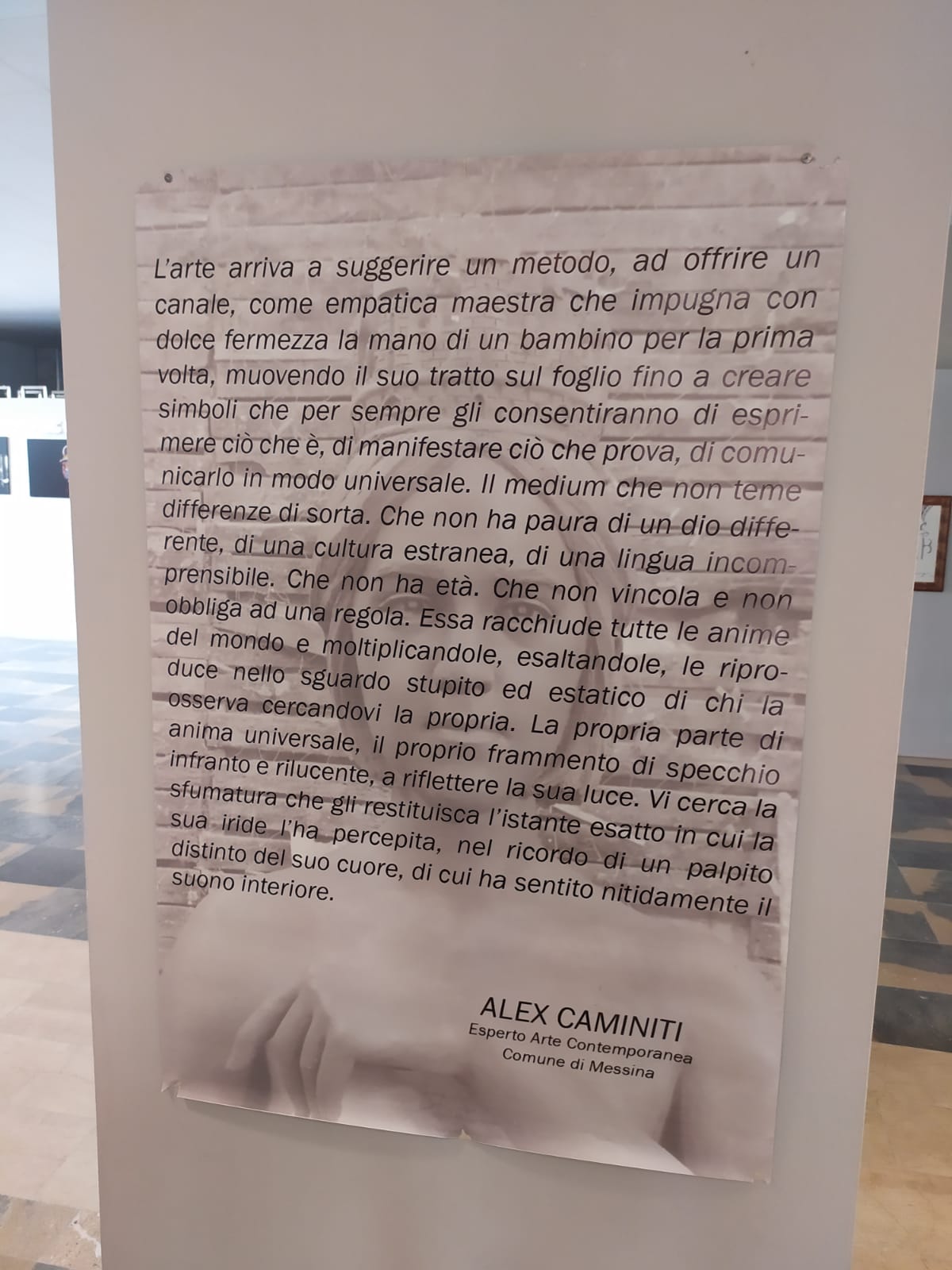 Alex Caminiti, presente con le sue opere nei musei dei cinque continenti, è uno dei maggiori esponenti dell’arte italiana. Dotato di una forte consapevolezza tecnico-pittorica e di una curiosità onnivora, che sfiora l’eclettismo. Caminiti è noto soprattutto come artista informale, gestuale: munito di un segno fluido, solo apparentemente ‘selvaggio’ e incontrollato, ricco di rimandi alla tradizione dell’informale europeo, a quella dell’espressionismo astratto americano, alle più recenti suggestioni provenienti dalla street art e dalla sensibilità neo-pop. Alex Caminiti è in realtà un pittore legato alla tradizione italiana e a una tecnica classica, basata su un ferreo rapporto tra idea e composizione, tra disegno e forza del colore, tra forma e contenuto”. L'evento curato da Michele Benfari soprintendenza beni culturali di Agrigento a invitato gli