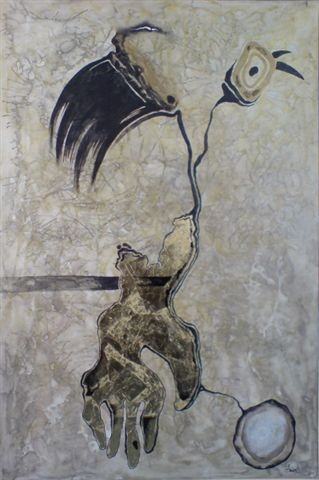 I colori e gli oggetti, sul cartone, danno vita a figure archetipiche che non si limitano ad apparire e a raccontarci di sé attraverso le loro forme, già abbastanza esplicite e impudiche. Queste figure, infatti, parlano, e lo fanno in modo piuttosto diretto.