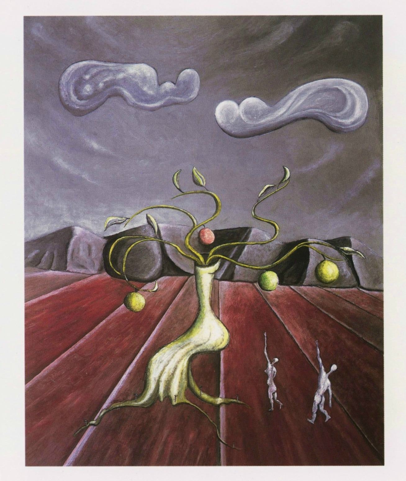 “A questo artista va riconosciuto il merito di avere creato un luogo inedito, un sito mitografico, che si direbbe immobile come le nuvole che lo solcano: eppur si muove. […] Non solo si muove, questo luogo vagheggiato da un ammiraglio, ma probabilmente galleggia al pari delle sue nuvole gravide. […] così si definisce il clima di questi dipinti gravidi di nuvole olimpiche: offrono un’alta pressione sull’evoluzione umana. Sulla vallata di Ammiraglio Acton, dove la piana presenta distese di campi là e tolde di legno qui, membra lattiginose in alto e radici protese in basso, dentro una corona dentaria di colline che sono ora rocciose ora ghiacciate, stanno sospese mammelle del futuro: lì, cadono molti limiti […].” (Tommaso Trini)