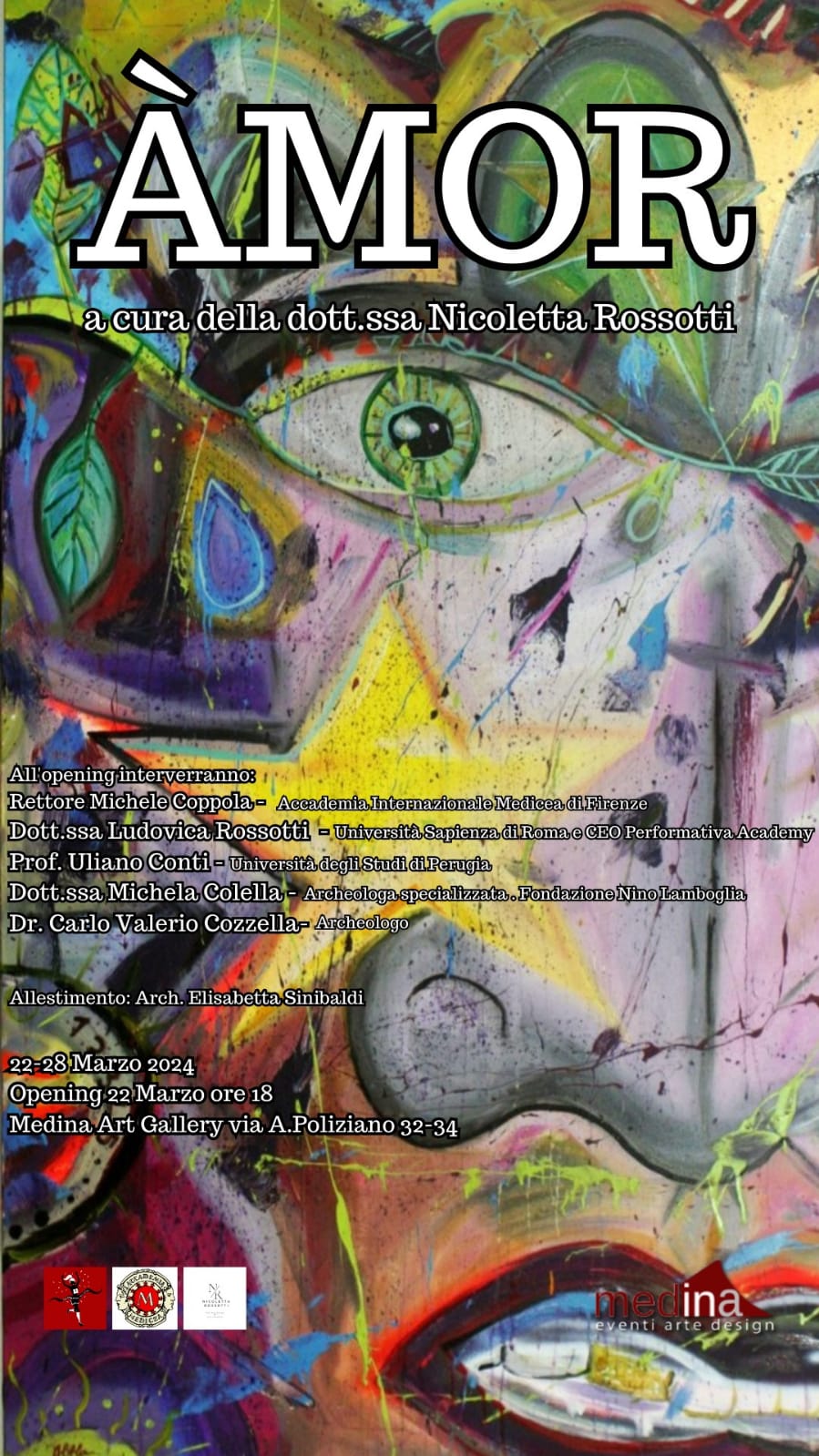 Si intitola ÀMOR la mostra collettiva che sarà inaugurata dal vernissage di venerdì 22 Marzo alle ore 18:00 presso la Galleria Medina di Roma, in via Angelo Poliziano 32/34, curata dalla dott.ssa Nicoletta Rossotti, storica dell’arte, critica d’arte e curatrice d’arte.