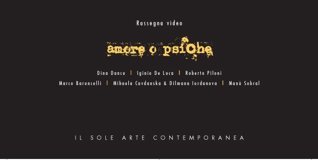 Nelle due sale nuovamente spente della galleria Il Sole Arte Contemporanea, questa volta si affronta il tema del linguaggio video con l’intento, specifico, di evidenziare le varie possibilità espressive di tale medium. Il raduno presenta sei artisti con un’opera ciascuno, la metà dei quali sceglie di appartenere ad Amore (M. Baroncelli, M.Cavdanska & D.Iordanova, Manù Sobràl) poiché i relativi video mostrano venature di eloquenza, musicalità e policromia narrativa; mentre gli altri tre artisti si accostano a Psiche (D.Dancu, I.DeLuca, R.Piloni) per i propri lavori disadorni, asciutti e ieratici. Tale rassegna chiude la proficua stagione espositiva di questa galleria sottolineando, nuovamente, un interesse ad ampio spettro per le diverse espressioni linguistiche in seno allo scenario artistico contemporaneo