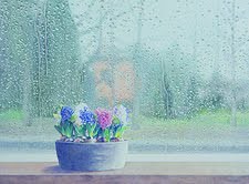 volte dalle gocce di pioggia che scivola sui vetri.