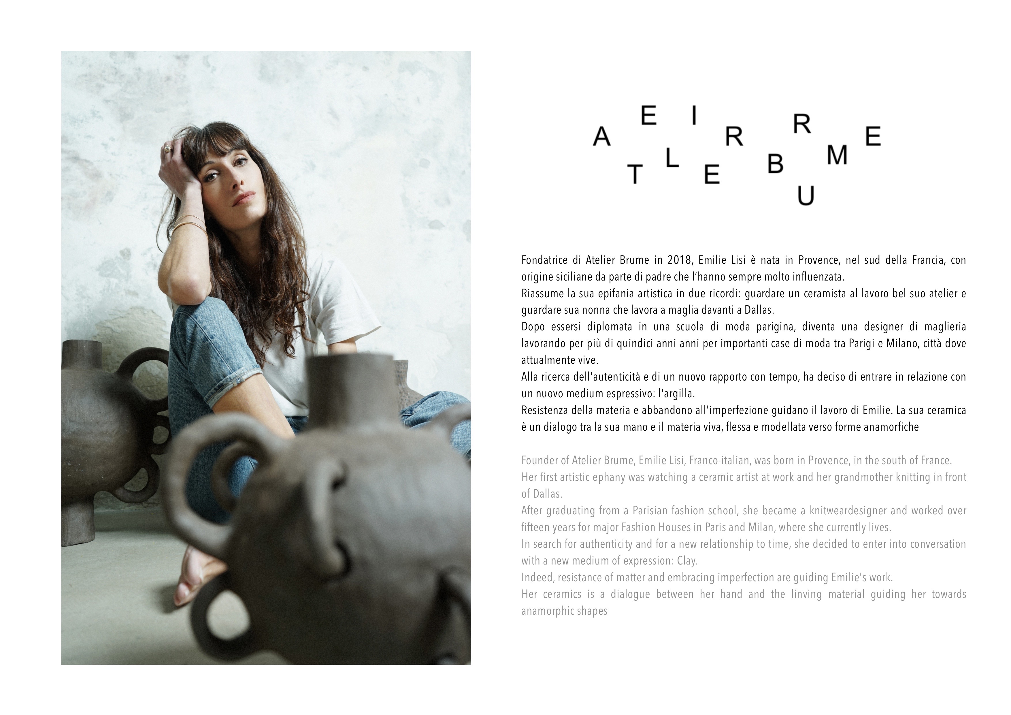 AMULETOS è una foresta di oggetti dell’intimo. Ceramica, arte, design e ricamo, Emilie Lisi cerca un rapporto con l’invisibile, con la parte celata della nostra umanità. Un lavoro trasversale che rivela una profonda ricerca sulla materia ed un’attenzione ai risvolti sottili del mondo interiore.