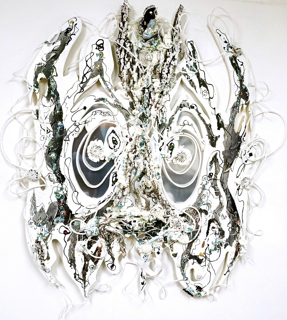 L’esposizione seguirà quindi due filoni narrativi, il primo verterà sulla metamorfosi e sul travestimento. A tal proposito è necessario citare le composizioni pittoriche di Susan Mains ispirate al rituale dello Shakespeare Mas dove i soggetti sono le maschere del Carnevale a Carriacou. Tale produzione è testimonianza di un’espressione culturale unica derivata dalla colonizzazione dell’isola da parte dei francesi e dall’imposizione del cattolicesimo su gran parte della popolazione ridotta in schiavitù in base al Codice Nero del 1685. E ancora tralasciando citazioni storiche, emblematiche saranno le narrazioni estetiche di Cristina Corvino, Alfonso Mangone, Armando Velardo, Giancarlo Flati che, seppur con materiali e stili eterogenei, indagheranno sul concetto di trasformazione e nuovi linguaggi al fine di comprendere l’umano nella sua interezza.