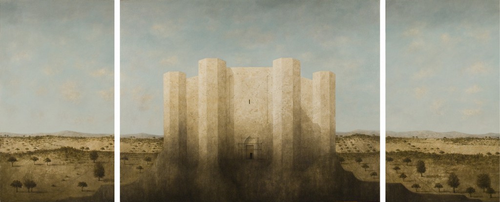 All’improvviso, una forza misteriosa e sconosciuta lo afferrò per il bavero. Fu spinto, trascinato, risucchiato. Dileguate tutte le sue membra, leggero come l’aria, si ritrovò d’incanto in un mondo altro. Smarrito, s'aggrappò ai suoi pensieri che non vollero dargli spiegazioni. Si guardò intorno stupito per quello che gli stava accadendo e meravigliato di trovarsi in un luogo paradisiaco. Immediatamente la sua incredulità si chetò e la vista di quel luogo così incantato lo rasserenò all’istante. I suoi sensi iniziarono a sussultare. Gli occhi gioivano e il cuore era sereno. Dolci colline mediterranee allietavano il paesaggio, il cielo era terso, l’acqua tanto limpida da rispecchiarsi dentro. In lontananza una fortezza maestosa e austera, dalle linee pur tuttavia delicate ed oniriche, cipressi in filare. La semplicità di quella scena dal sapore medievale era criptica ma idilliaca. Tutto era in perfetto equilibrio, l'armonia era sovrana. Ogni dettaglio al giusto posto.
