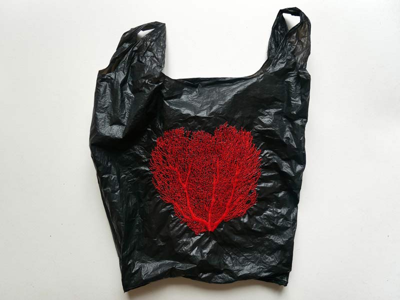 Elemento centrale della mostra è la serie (F)utiles, dieci sacchetti di plastica neri con ricami a mano di specie vegetali, pubblicata nel suo ultimo libro "A Stitch Out of Time", uscito lo scorso aprile per la casa editrice indiana Tara Books.