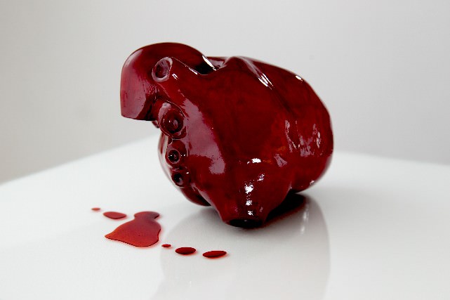 guida verso il centro pulsante dell’installazione: un cuore in resina rossa realizzato dall’artista è adagiato su di un