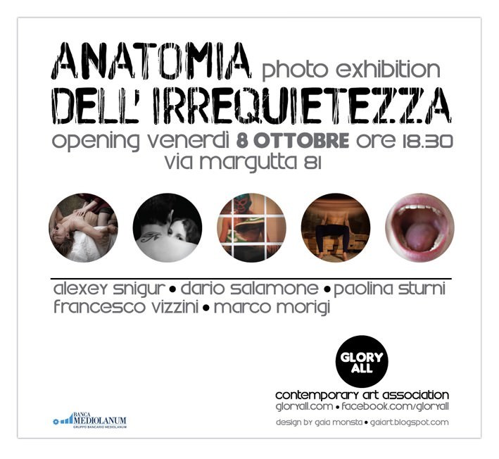 L’associazione culturale Glory All, nata con l’intento di sostenere la cultura artistica contemporanea, presenta una rassegna dedicata a cinque fotografi che attraverso la loro arte esplorano il difficile e delicato tema dell’irrequietezza intesa come continua ricerca di equilibrio, forza di cambiamento, capacità di mutamento del sé e del corpo.