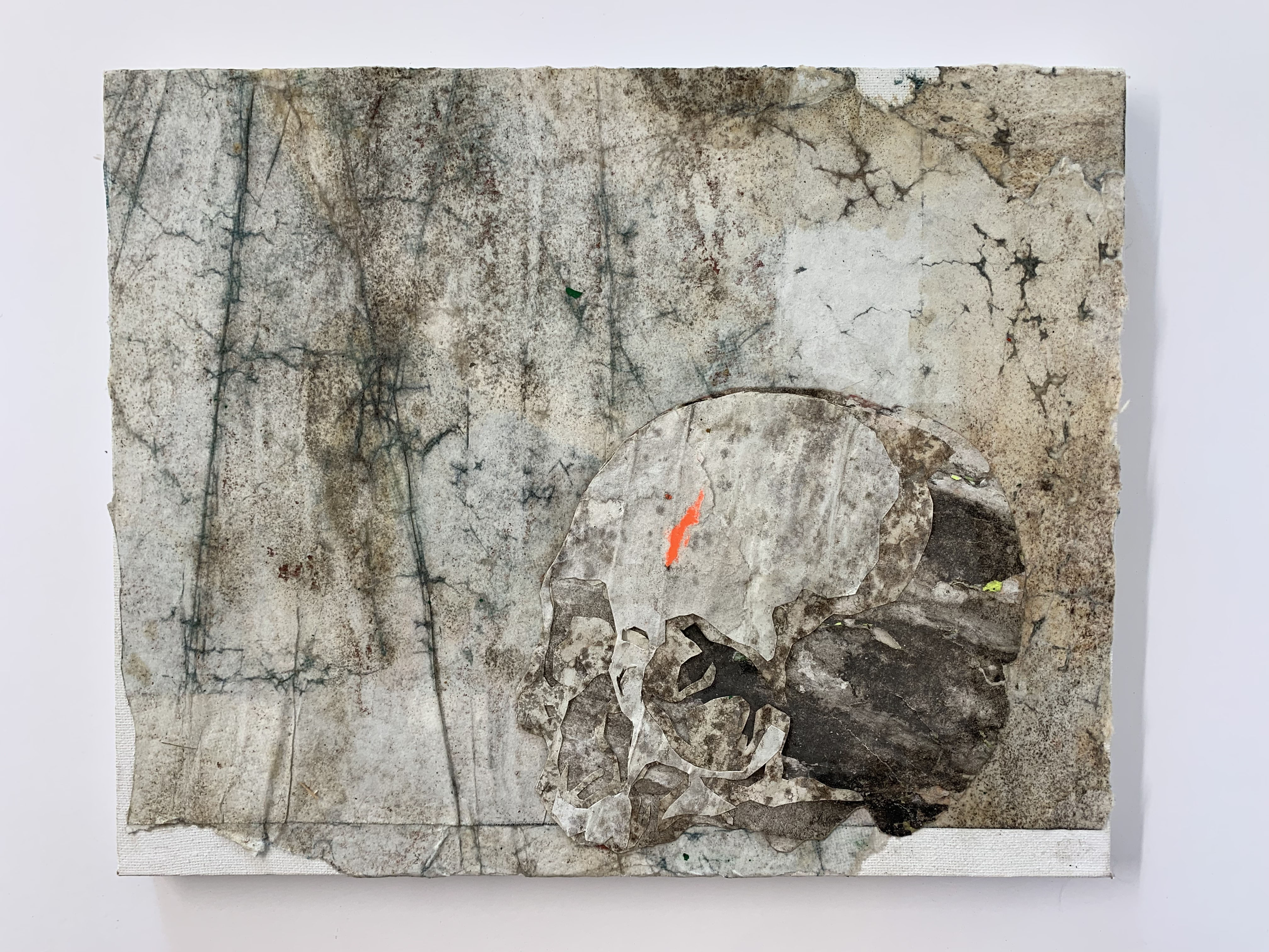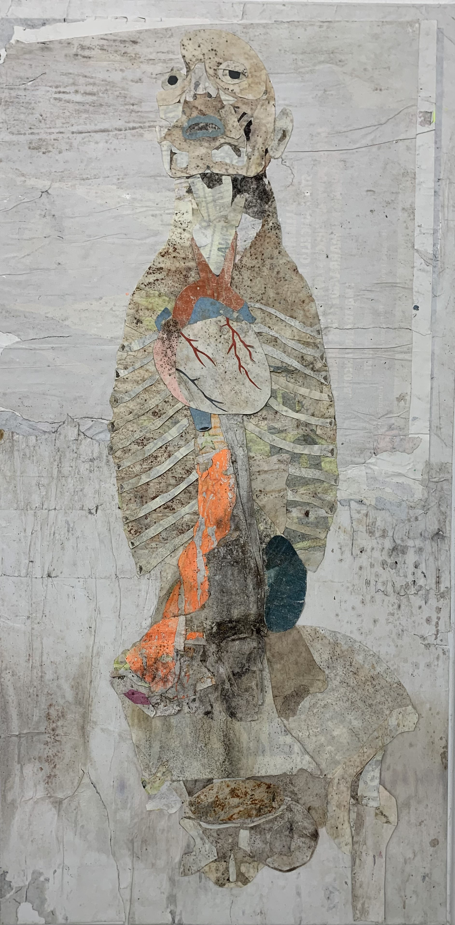 Le carte recuperate, sezionate e ripulite, si trasformano in nuove epidermidi, confini con il resto del mondo. I manifesti, sminuzzati, sono infatti trasformati in materia, assumendo nuove forme, nuove apparizioni. L’artista ridà vita a ciò che sembra svanire. La morte, del resto, è trasformazione.