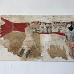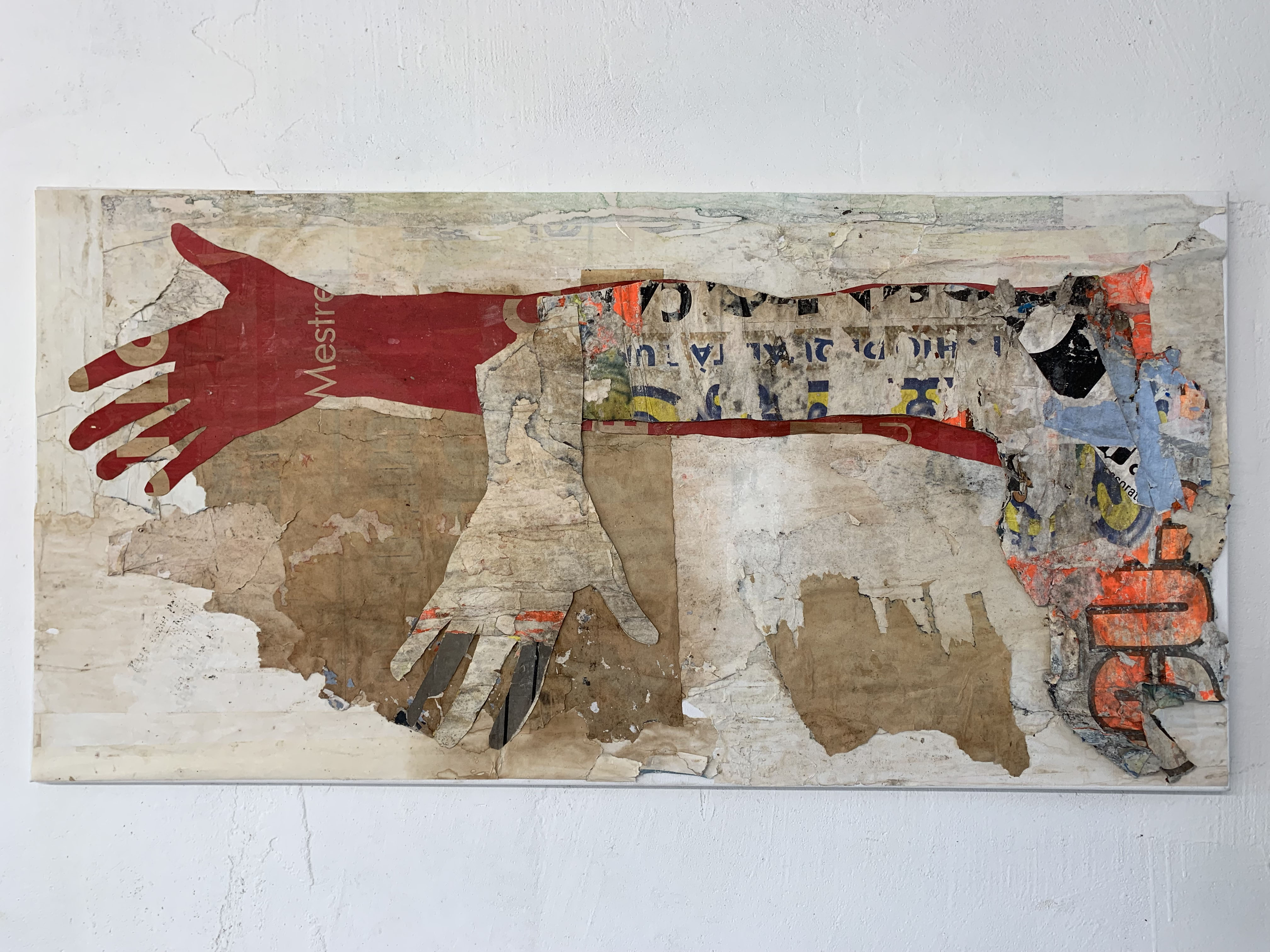 La precarietà della carta è metafora dell’umana fragilità. I manifesti, oggetto di sfregio e intemperie, evocano il senso di abbandono. L’artista è affascinato dalle cromie, ma anche dalle cicatrici che li percorrono e non di meno lo attirano le muffe e le ruggini che con il tempo si sono depositate sulle superfici cartacee. In particolare modo, egli osserva, con attenta sensibilità, le macchie che hanno dato nuova veste alle carte, trasformandole in sorta di livree.