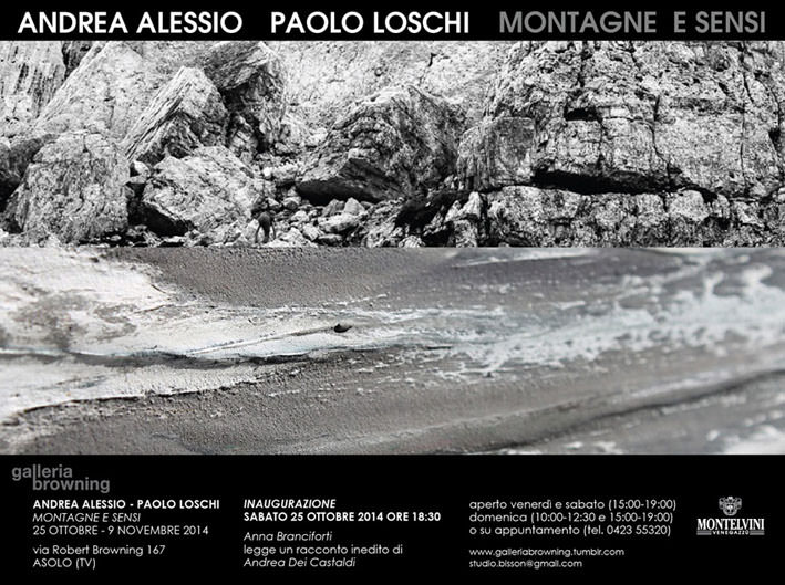 La Galleria Browning è lieta di inaugurare la mostra ‘Montagne e Sensi’, a cura di Steve Bisson, che incrocia i percorsi artistici del fotografo Andrea Alessio e del pittore Paolo Loschi.