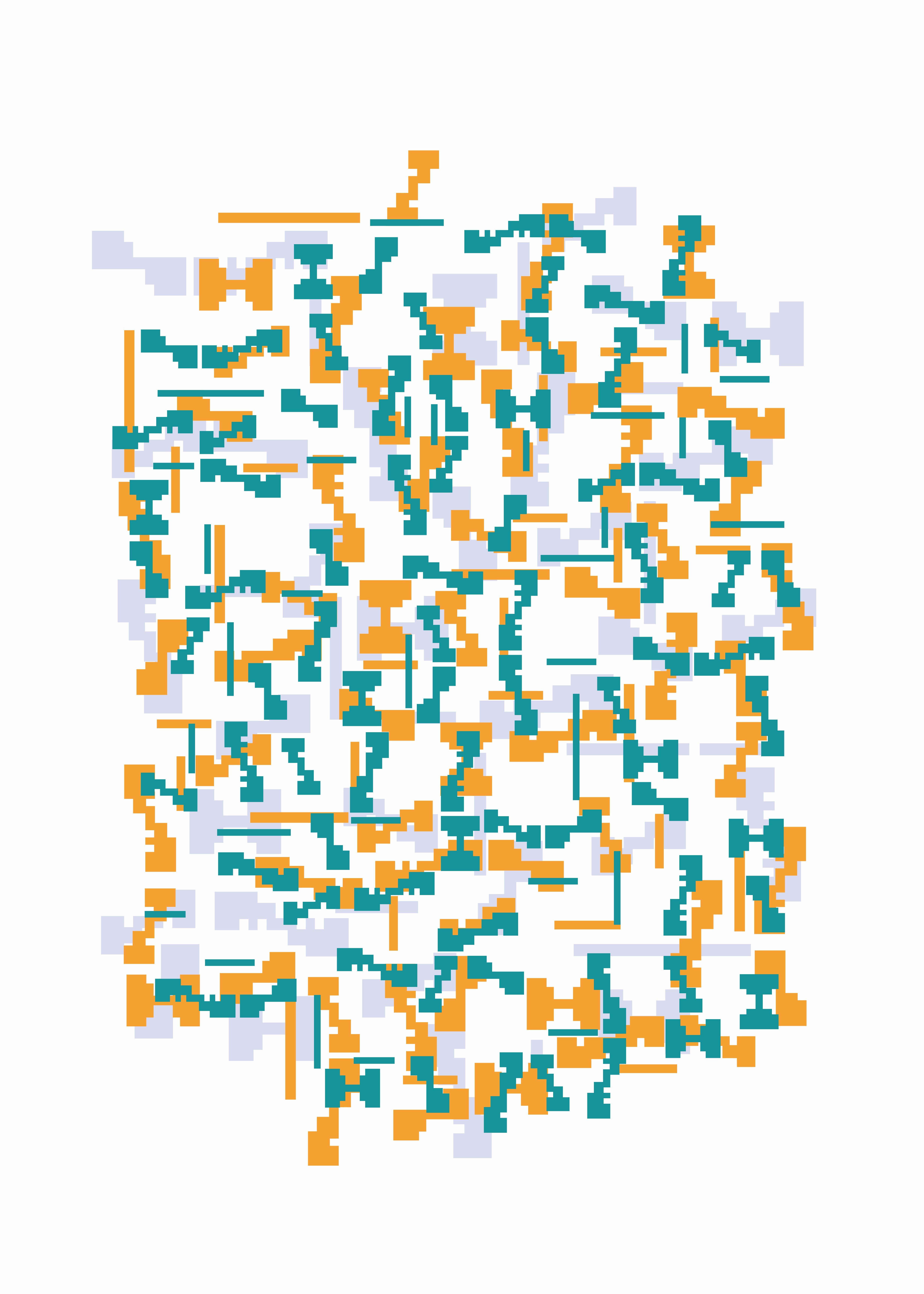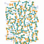 Una volta inserite le forme visuali nelle strutture, Alkin prosegue con l’eliminazione delle strutture stesse, ottenendo intricate composizioni di elementi fluttuanti. La tecnica utilizzata è il “papier collé”, frammenti di carta di diverso tipo e colore incollati su cartoncino, senza l’uso di altri materiali.