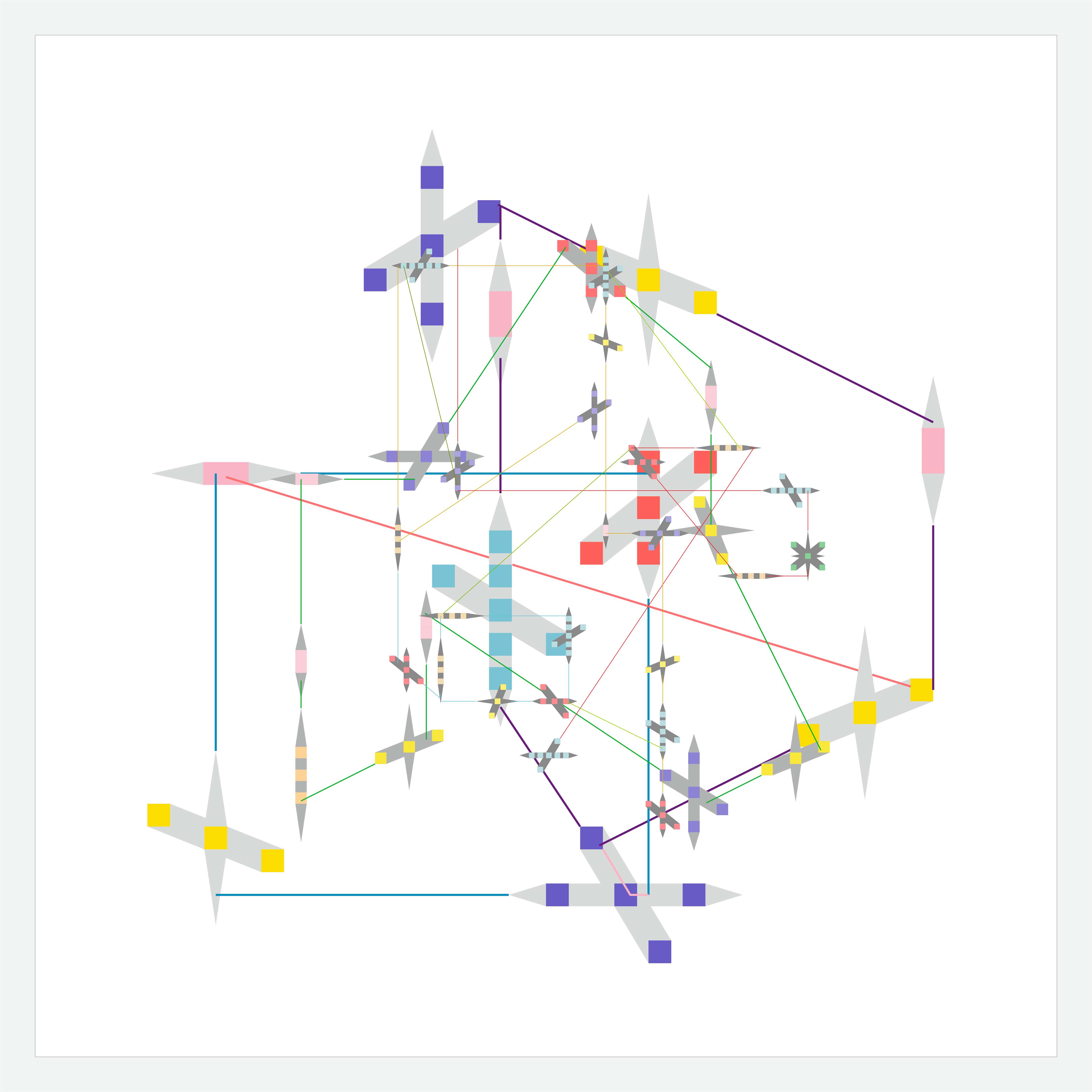 Nella sezione finale della mostra è possibile osservare l’opera Fundamentals, che nasce dall’applicazione del personale linguaggio dell’artista.