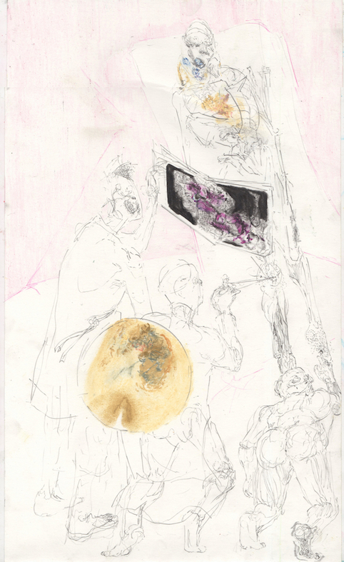lo schianto automobilistico, come abitacolo-occhio, abitacolo-orbita, che è visto e che vede, collasso di carne e ferro, confusione fra interno ed esterno. È commovente, ed è come accedere a un’altra vita che non è un’altra, non è l’invenzione di un mondo che non c’è, ma è la vita stessa che dorme in questa, che aspetta di sprigionarsi come se potessimo avere improvvisamente ogni cosa a portata di mano, come se potessimo sentire la nostra mano afferrare un bicchiere, come se potes- simo essere d’un tratto felici. Ed è così che un aspetto è necessario all’altro, questa compre- senza, e non sarebbe lo stesso se si tentasse di disegnare solo l’immanenza dell’atto senza la rappresentazione di un’azione. Compresenza dell’organico con l’inorganico, dell’essere con il non-essere, di un movimento nomadico orizzontale e del precipizio verticale, di percorsi in superficie e di continue cadute in abissi. Compresenza ancora di una passione angelica con una catastrofe imminente, di una speranza dorata e quasi calda con una grigia distopia, di una ricchezza turca, orientaleggiante, con la scarnificazione più atroce, senza riuscire più a distinguere il battito del cuore dal ticchettio di un orologio, una chiusura di palpebre dal diaframma di un obiettivo, il letto fluviale di un’iride dall’estensione di un paesaggio corrugato, un mazzo di fiori da un’incrostazio- ne minerale, la spuma di un mare da un acido corrosivo. E che esperienza meravigliosa, direi divertente, quando con tocchi quasi didascalici, Andrea vuole illustrarci i suoi intensi viaggi, ingenuamente: una lente d’ingrandimento, il cerchio di luce di una lampada puntata su un dettaglio, un quasi esploso assonometrico del contenuto di uno schermo. Oppure quando con sezioni, diagrammi, teoremi, frammenti di materie viste al microscopio, cerca di fornirci delle prove scientificamente valide, come se bastasse sezionare un occhio per trovarci dentro la follia di uno sguardo, come se questo sguardo stupefatto nascesse in seno a qualche malattia del bulbo oculare. È quasi un folle iperrealismo il suo, non nel senso di una riproduzione dettagliatissima del reale, ma in quanto volontà di restituire in vitro un campione di tutte le forze e di tutte le sensazioni relative a un determinato stato, che è null’altro che reale. Mappe scientifiche, cortocircuiti emotivi, campionari di segni come attinti da una storia dell’arte ingoiata e vomitata sulla carta talvolta molto attentamente, a capo chino, con religioso rispetto, talvolta con gesti violenti e istintivi, sempre osservando i maestri e frustrandosi della propria incapacità, e rintracciando più forza in un solo angolino di Bramantino o di Bacon che in cinquanta disegni partoriti col disagio di chi fallisce sempre. Perché in fin dei conti quello che fa Andrea è molto facile, si tratta di fallire, lungo la più difficile delle strade, che è allo stesso tempo la più facile, per chi, come Andrea, è riuscito nell’impresa di diventare cretino, ma senza fare il furbo, nell’inutilità di essere difficili, ma nel tentativo di essere impossibili. Il fallimento è insito in questa modalità che deve costantemente essere in movimento ma che non può mai raggiungere nulla, in cui non esistono opere ma solo momenti di uno stesso interminabile processo, e si fallisce perché non si può che essere inca- paci, incapaci e disperati, e meravigliarsi del miracolo di un nuovo inaspettato evento, di cui non si è artefici ma solo testimoni. E il fallimento è anche il nostro: proprio quando il sogno di raggiungere il desiderio ci sembra possibile esso si trasforma nel desiderio frustrato di non poterlo raggiungere mai, ma di poterlo magari solo catturare, osservare, sezionare, fino alla prossima stupefazione, fino al prossimo evento, fino alla fine di questo testo perché pure deve finire, questo testo.