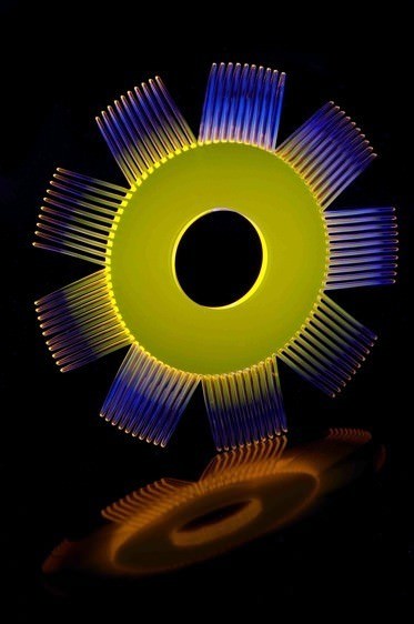 Andrea Branzi was asked to venture upon this unusual and apparently frivolous subject and to design twelve different plastic comb prototypes. (Cecilia Cecchini) Designing rigour, imagination and use of advanced production technologies created twelve hardly definable prototypes: a combination between portable sculptures and a miniature of a piece of furnishing. It is difficult to grasp at their dimension, they could easily be models on scale of much bigger objects. They are decorative combs, contemporary talismans full of meanings but light in the shapes and the colours.