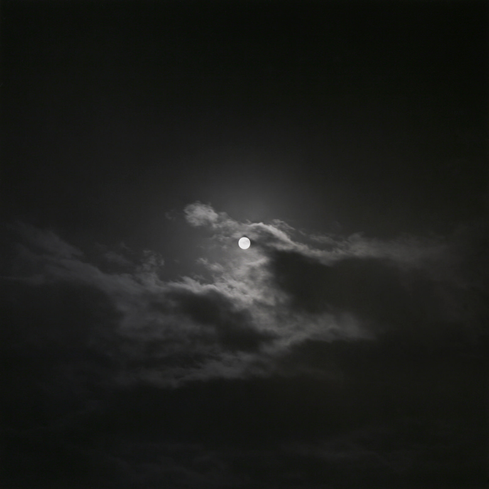 Nei grandi cieli notturni, dove la Luna illumina tenuemente la spettacolare casualità degli eventi atmosferici, Andrea Calabresi ricerca la fusione tra la purezza di una visione infantile e la complessità del guardare propria dell’età adulta.