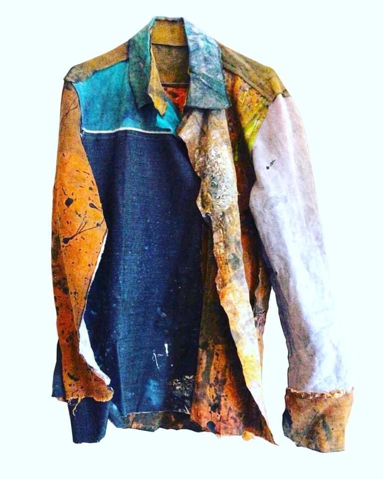 Andrea Capecci sedimenta, attraverso una tecnica originale della lavorazione dei tessuti, in particolare del denim, un excursus materico caratterizzante il percorso post industriale dell’uomo moderno