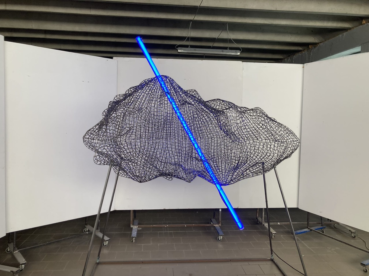 Per la quarta edizione di “A porte chiuse” (installazioni visibili per tutta l’estate direttamente dalla strada), Leogalleries ospita Andrea Cereda con “Cloud_States of Mind”: una nuvola di ferro, attraversata da un tubo luminoso che cambia colore, metafora del pensiero e degli stati d’animo.