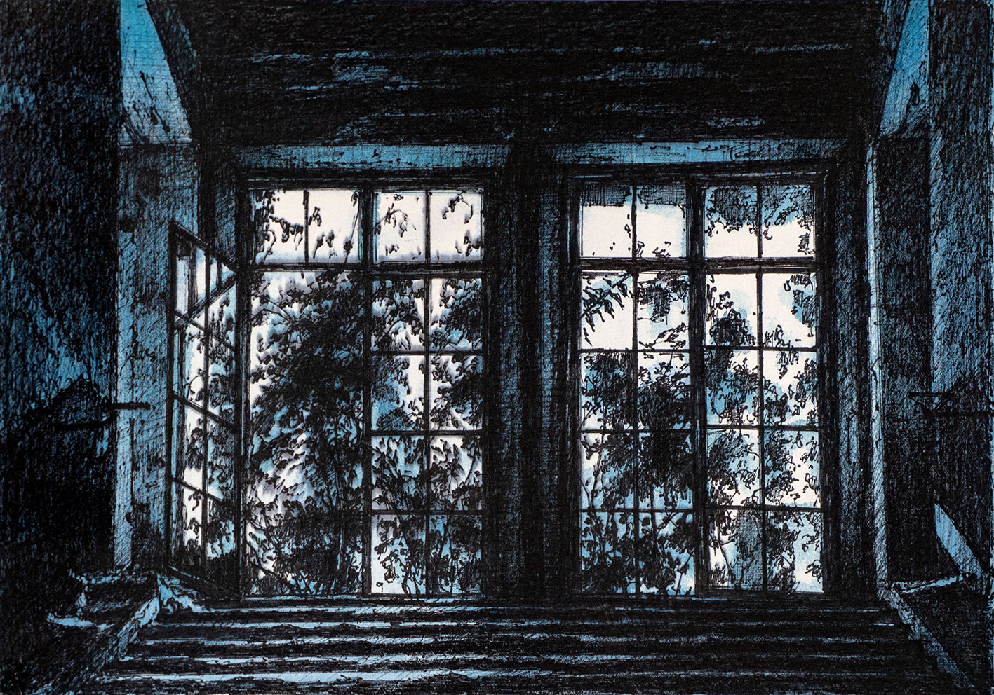 Andrea Chiesi, ideatore, in disegno e pittura, di architetture meta-reali, investe la sua intensa carica pulsionale nel ricostruire, visionariamente, strutture abbandonate, riconsegnando loro una vita subliminale. Affiorano, nella sua opera, radici alimentate, in anni giovanili, da una controcultura Punk e post Punk, quando disegnava fumetti e fanzine per liberare, creativamente, le sue ossessioni.