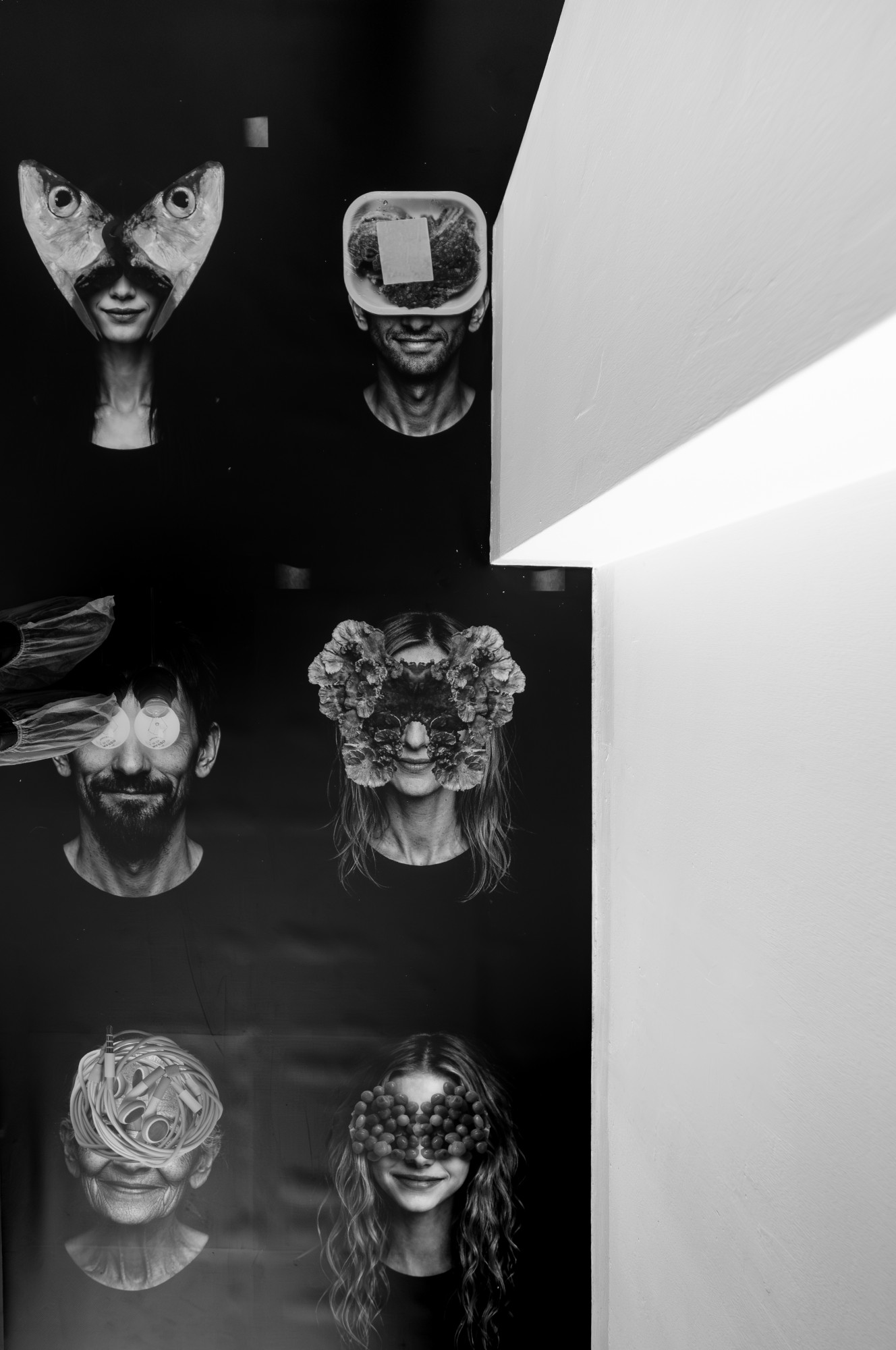 "The raw code" è un’opera grande come la galleria che lo ospita, Spazio E_EMME, realizzato con tecnica mista, un mosaico di fotografie e colori rielaborati al pc, e stampato su PVC.