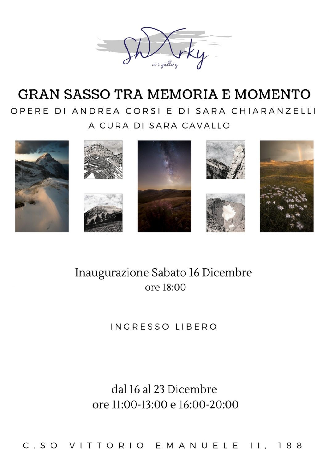 Sabato 16 Dicembre alle ore 18:00, Sharky Art Gallery presenta “Gran Sasso tra memoria e momento”, mostra fotografica di Andrea Corsi e Sara Chiaranzelli, a cura di Sara Cavallo.