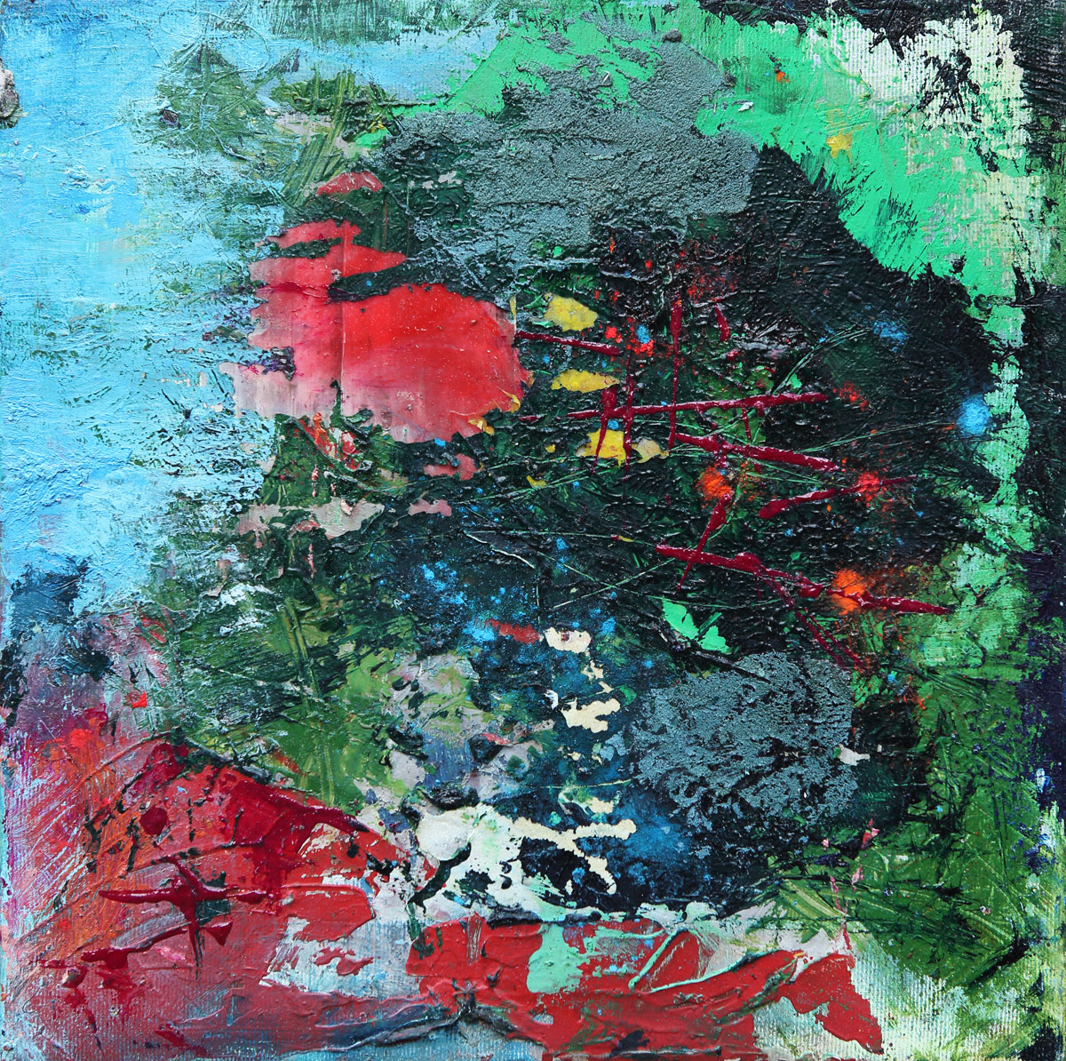 “L'unico fondamento assoluto che ci resta è la libertà di pensiero come postulato inconfutabile per affrancarci da forme precostruite che ci incatenano”. Andrea De Luca non si allontana più di tanto dalla realtà. Ma l’aggredisce, la scruta, la spolpa e la graffia. Cerca di scardinare i parametri classici della composizione dell’immagine, di infittire e annullare ogni potenziale informativo per poi ricomporre una composizione in modo scenografico, mai banale, dando risalto ai suoi significati effimeri del senso. Non cerca di essere un narratore, ma probabilmente ci trasmette la sua musica usando colori e segni.