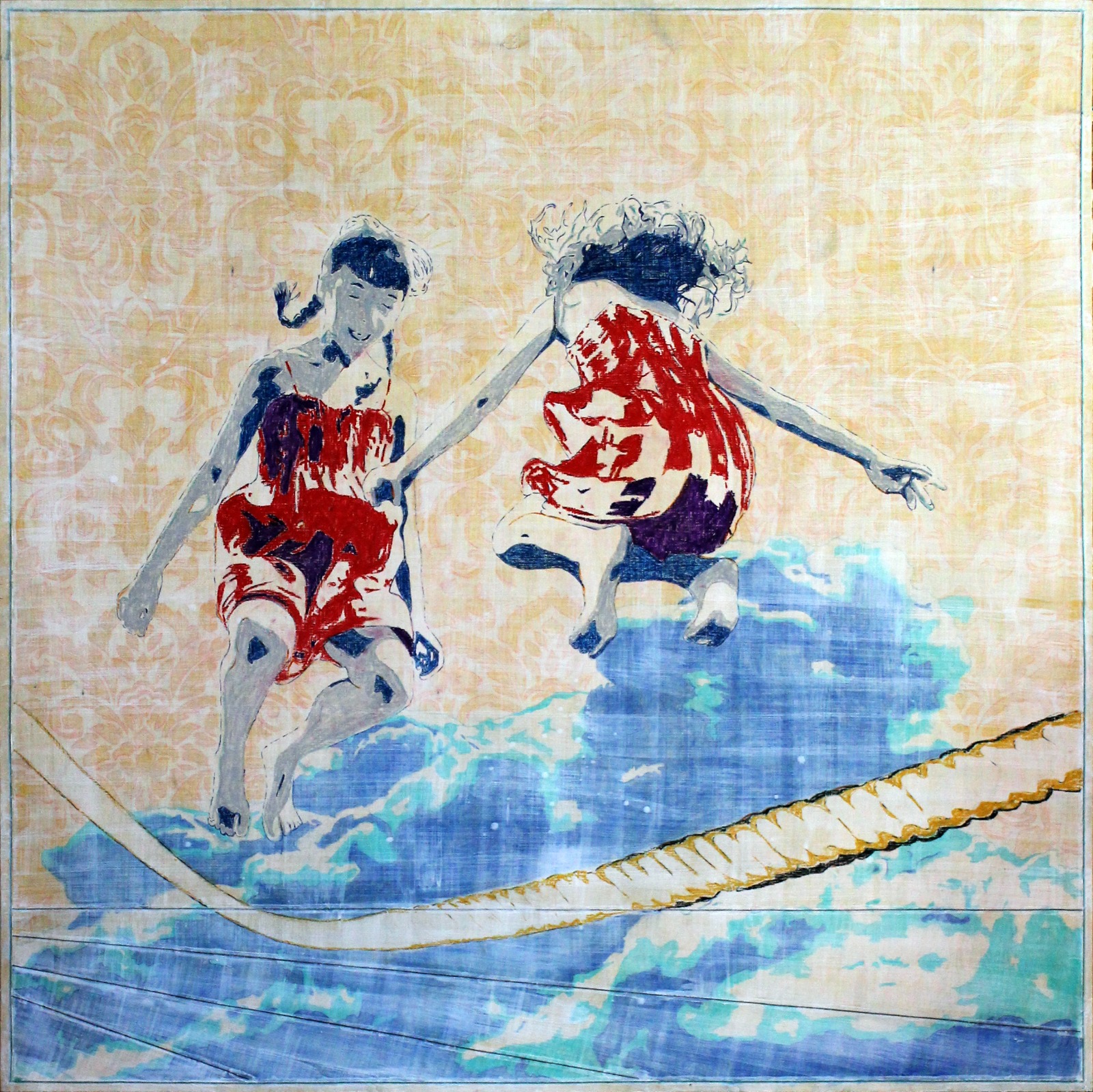 “Nell’impossibilità di dipingere con modelli dal vivo – racconta De Ranieri – ho creato una serie di maschere con delle buste di carta per uso alimentare e le spedite per posta ad alcune persone che hanno deciso di prendere parte al progetto. In base alla propria interpretazione della maschera – prosegue – ciascuno si è scattato una foto. In quegli scatti ho trovato i miei modelli a cui ho cambiato solo lo fondo, quasi sempre un motivo grafico che contribuisce a far risaltare i soggetti e dare loro tridimensionalità”. La tecnica – un trattamento a cera in diversi passaggi – catalizza l’attenzione sugli occhi dei soggetti, che bucano la tela con i loro sguardi, arrivando dritto all’osservatore. Si crea così un dialogo diretto e profondo, proprio grazie alla mediazione della maschera.