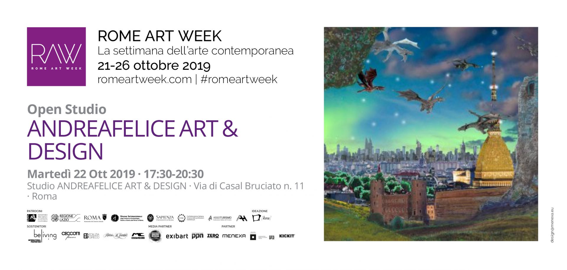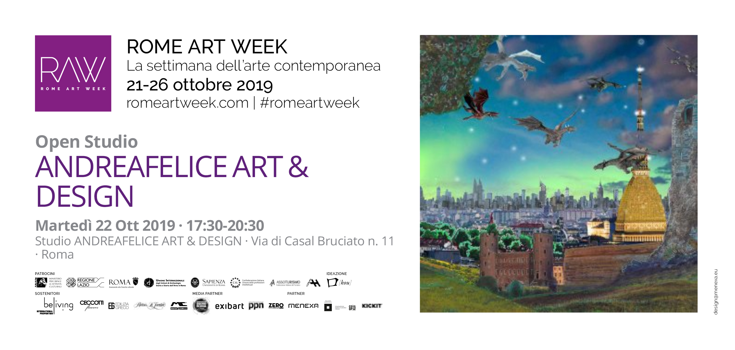 L’eclettica personalità di Andrea Felice, architetto, videoartista, cultore del fantasy, creatore e progettista di vision-town, viene pienamente messa in luce mediante la selezione delle opere presenti in questa sua nuova edizione di R.A.W. 2019, all’Open Studio presso “il Pensatoio”, allestita nel creativo spazio del Casale ottocentesco dei Torlonia in un parco accogliente e familiare, che anticipa la sua edizione torinese presso lo spazio espositivo istituzionale, l’Ex Accademia Artiglieria nella Paratissima Art Fair 2019.