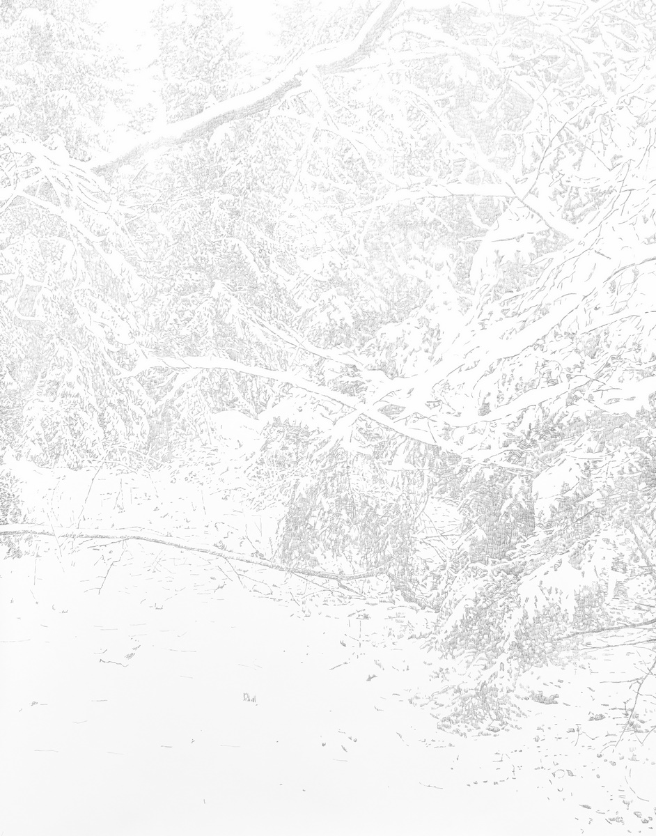 Nel 2012 Gabutti acquisisce una piccola incisione di paesaggio di Barthélemy Menn (1815-1893), artista attivo a Ginevra che ebbe grande influsso sulla pittura svizzera di paesaggio. A partire da questa minuscola incisione, Gabutti realizza un nuovo ciclo di disegni monumentali a inchiostro, che dà avvio ad un’indagine approfondita sul tema del paesaggio e dei suoi elementi. Si intensifica così la ricerca grafica tra figurazione e astrazione, tra figura e simbolo.