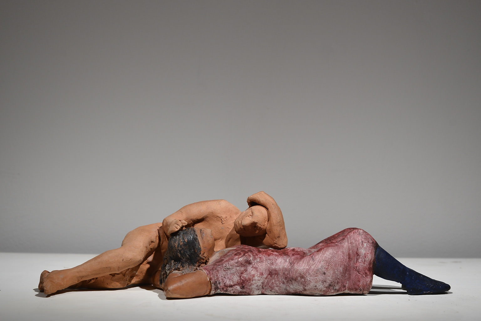 La mostra Signore e Signori si snoda tra una quindicina di installazioni/sculture ciascuna delle quali presenta una situazione che dà accesso a un microcosmo quotidiano, fatto di relazioni tra uomo e donna, tra l’essere umano e la società, la natura, il lavoro, e ce ne lascia immaginare la storia. Un microcosmo di terracotte che mette in evidenza in maniera delicata, ironica, a volte solo allusiva, la fragilità umana in una sorta di scansione fotografica di spaccati di vita vissuta in cui ciascuno di noi si può riconoscere.