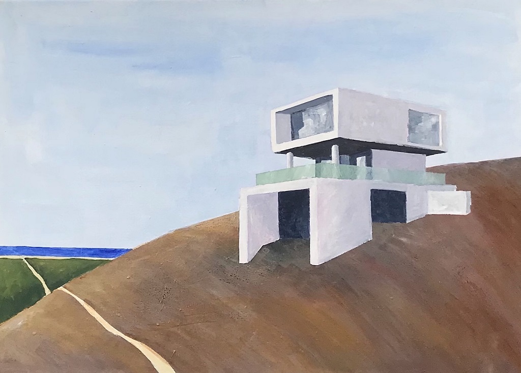 Protagoniste dell’esposizione sono ancora le architetture sospese e intrise di luce caratteristiche della produzione artistica di Granchi, un soggetto ricorrente che ha generato nel corso del tempo evoluzioni inaspettate e sorprendenti, risultati che spesso sfidano e talvolta travalicano le leggi del reale. Gli edifici pensati e tradotti in immagini dall’artista dialogano con la natura e con lo spazio, raccontando nel contempo la storia dei loro abitanti, che non appaiono nella composizione, ma di cui si intuisce distintamente la presenza.