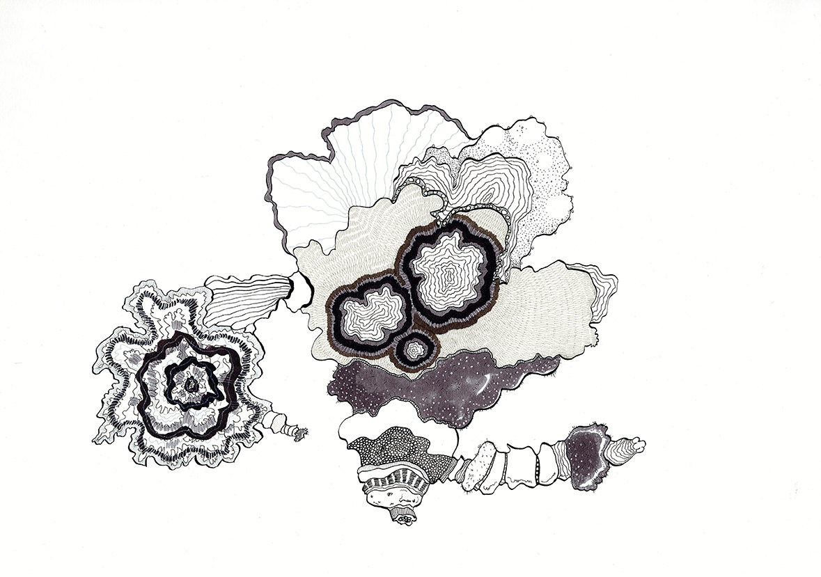 Guerzoni si avvicina ai soggetti, esaminandoli molto da vicino, come con una lente d’ingrandimento per poi allontanarsi e tornare a una visione prospettica e spaziale. Riflette sugli equilibri del rapporto uomo/natura, sulle similitudini e differenze fra mondo umano e animale, vegetale e minerale, sull’interconnessione fra fenomeni naturali, sull’interazione del mondo materiale con quello spirituale. Il metodo utilizzato nel creare questi lavori si avvicina a quello comparativo del botanico, che esamina e classifica ritrovamenti, ma Guerzoni analizza pragmaticamente il dettaglio per poi reinventarne forma e senso, dandone una rivisitazione intima e calandosi nel ruolo di interprete della realtà. I titoli delle serie in mostra fanno riferimento alle biografie di Minakata Kumagusu, biologo, Clarence Bicknell, umanista, e Camillo Sbarbaro, poeta; personalità fuori dal coro, autodidatte, versatili e irregolari.
