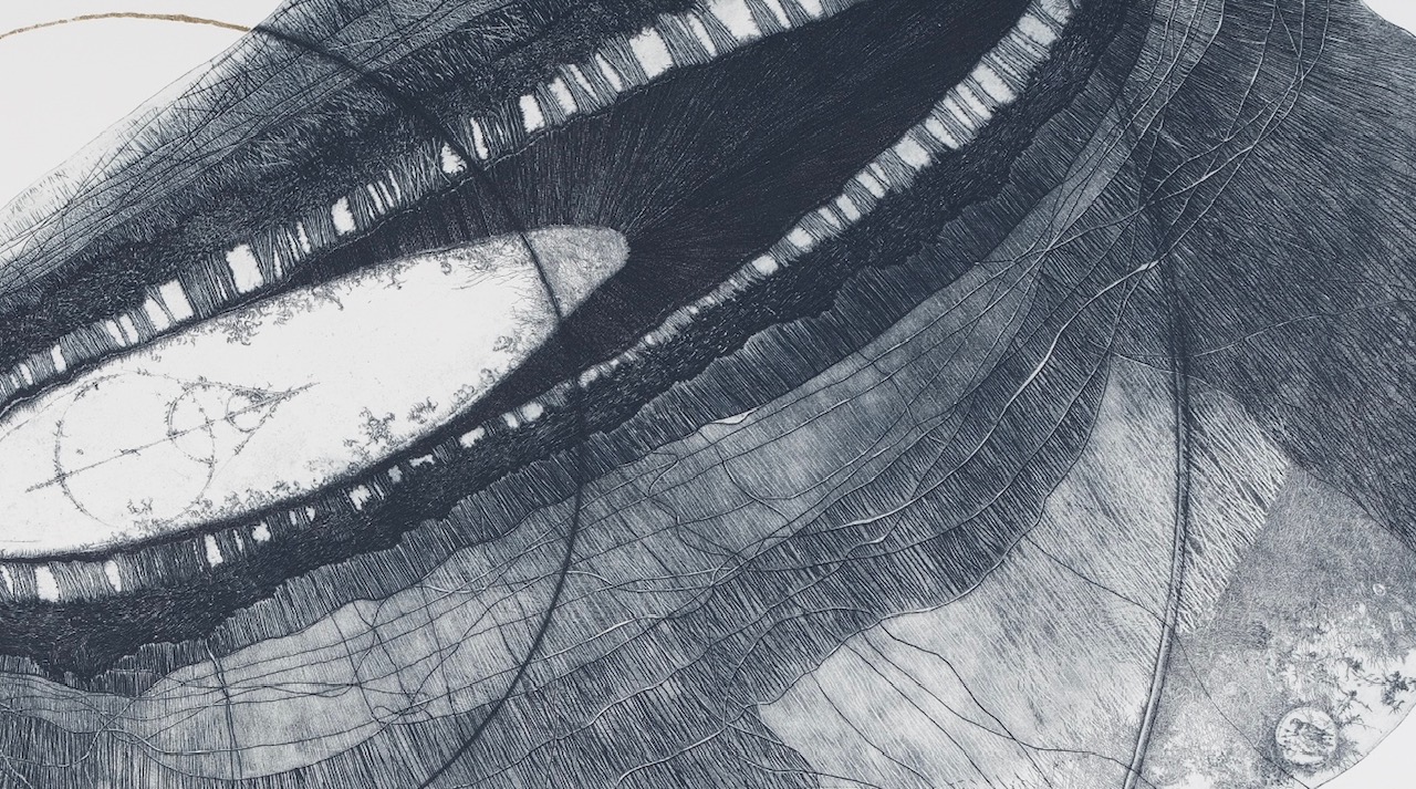 L’esposizione è un viaggio attraverso la poetica di Andrea Lelario, che la curatrice, Nicoletta Provenzano, descrive nei termini di un’immaginazione onirica e di una elegia cosmica. Un’arte che include e oltrepassa la realtà sensibile, inoltrandosi negli spazi della mente e nello sconfinato spazio siderale. Una ricerca artistica nella quale sedimenti di una cosmogonia interiore procedono dal grande al piccolo e dal piccolo al grande, attraverso l’elezione di due tecniche tra le più nobili e antiche, come il disegno e la calcografia.