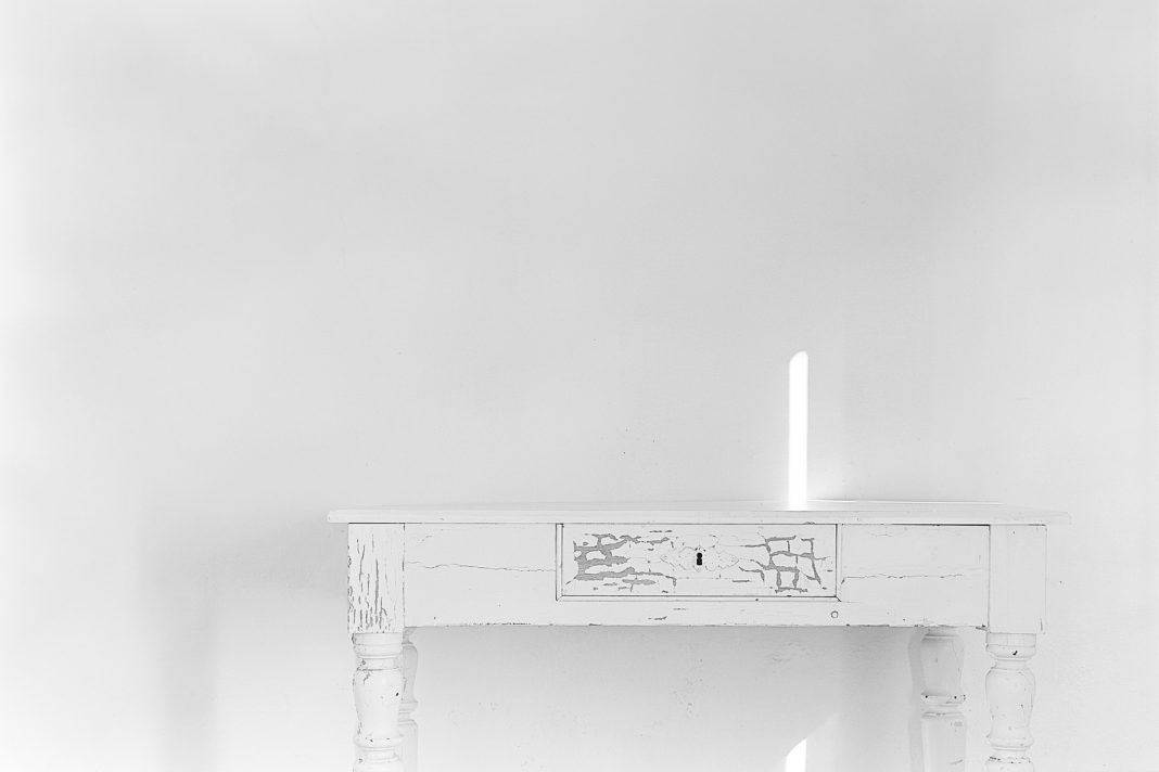 «Il lavoro di Andrea Lunghi – ha esordito Iurlano – si concentra sul territorio a lui più vicino. Non ha avuto la necessità di spostarsi in grandi centri urbani o verso destinazioni esotiche per parlare un linguaggio contemporaneo in maniera universale. E Luigi Ghirri che a sua volta è stato accolto da questi saloni, ha fatto lo stesso indagando la periferia emiliana». L’esposizione che conta diciassette composizioni per una quarantina di scatti, prende il nome da una delle due serie fotografiche che Lunghi ha presentato la scorsa estate all’Isola d’Elba: Tacet, un elogio al silenzio per riscoprirsi esseri pensanti e articolati, per valutare i propri limiti, un’ode alla capacità di ascolto che l’uomo moderno sta perdendo progressivamente abbandonandosi a rumori inconcludenti. «Tacet traduce in immagini il senso del silenzio e coglie i dettagli di un tempo trascorso – ha proseguito Lunghi – Dal Tavolo di Hervé Guibert agli ambienti frugali dell’Eremo di Santa Caterina che hanno accolto oltre duecento intellettuali provenienti da ogni angolo del mondo per creare, studiare, progettare, cercare e lasciare una loro traccia in questo luogo unico dell'Elba». Le fotografie di questa serie intendono raccontare gli interni che in quarant'anni non hanno subito trasformazioni, dunque angoli, interstizi e frammenti di spazi che sono stati testimoni di storie individuali quanto della nascita di opere universali. Lunghi aveva in mente Malevič, nello specifico il suo Bianco su bianco, ma anche il Rauschenberg che, ispirato dal compositore Cage, creò dei quadrati totalmente bianchi o totalmente neri. L’atmosfera che cerca di immortale in Porta II, non a caso e magari inconsciamente, era già stata il soggetto (sullo sfondo) sia di uno scatto di Hervé Guibert, sia di Hans Georg Berger, che egli considera il suo maestro.