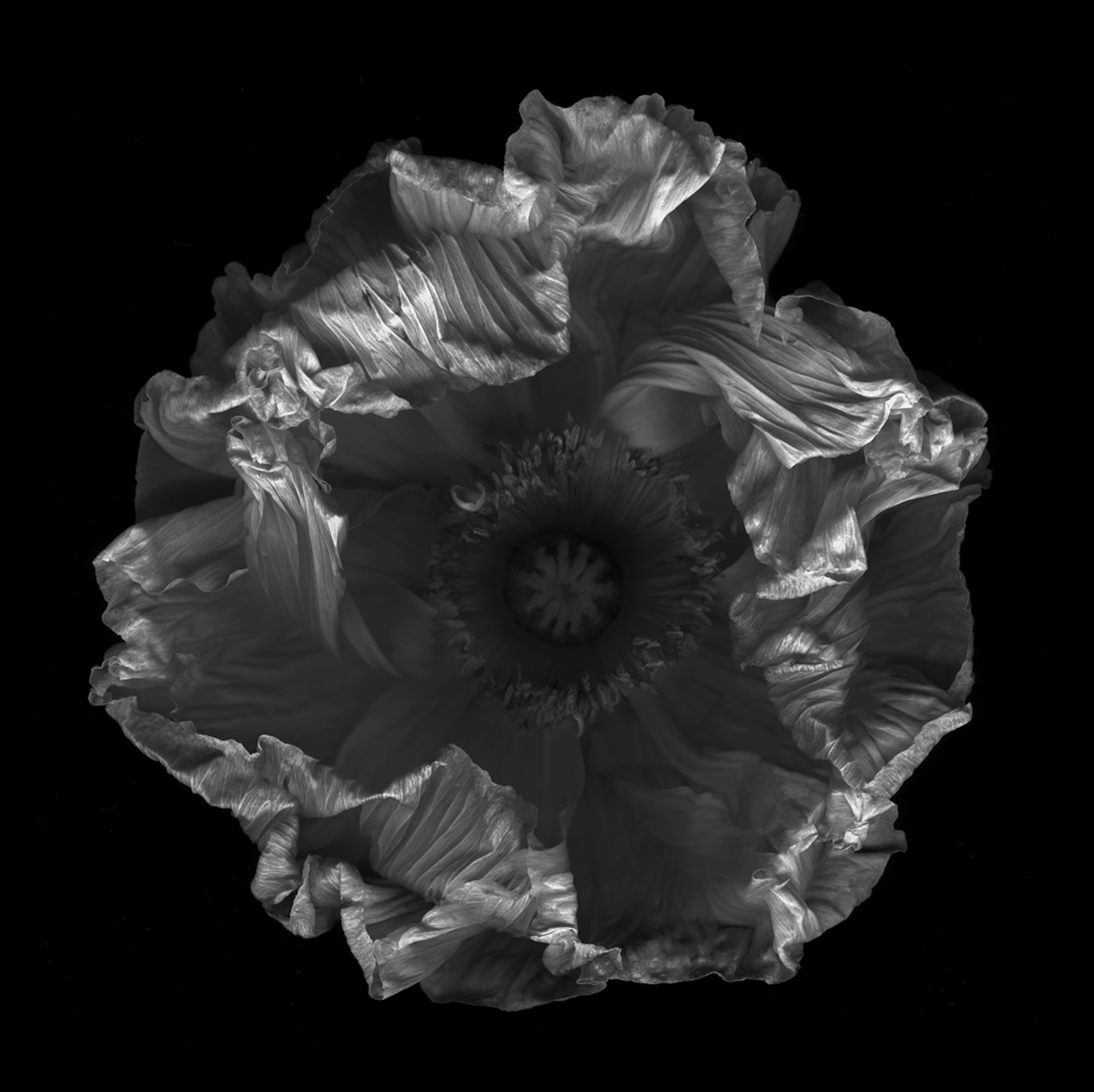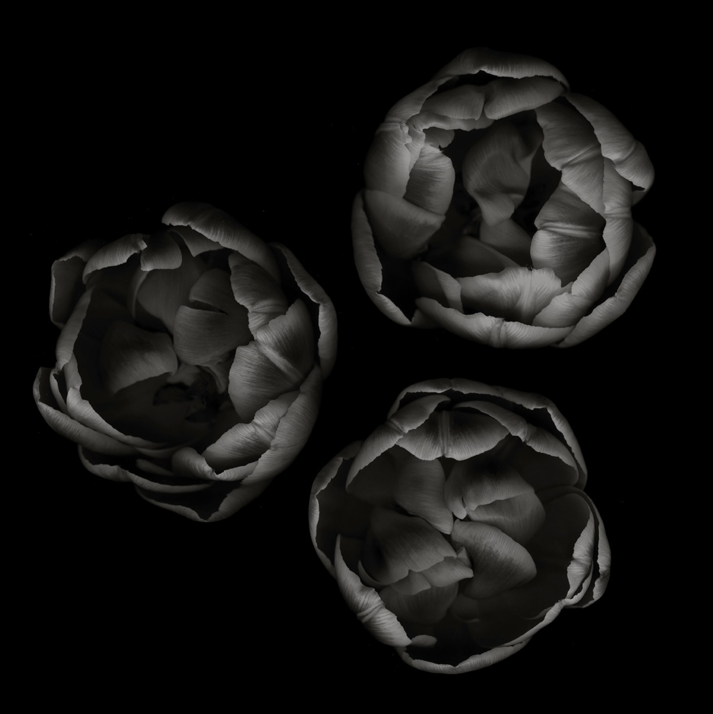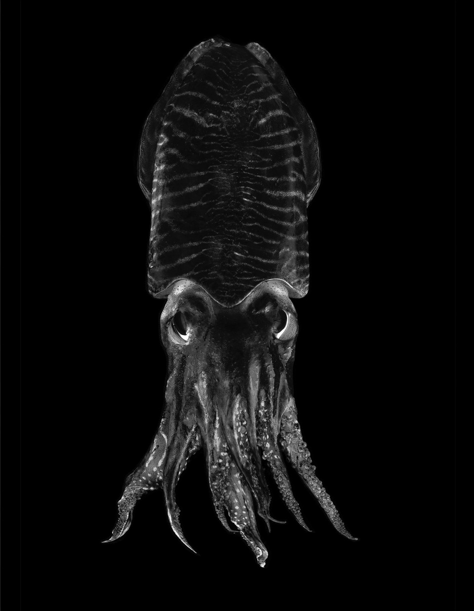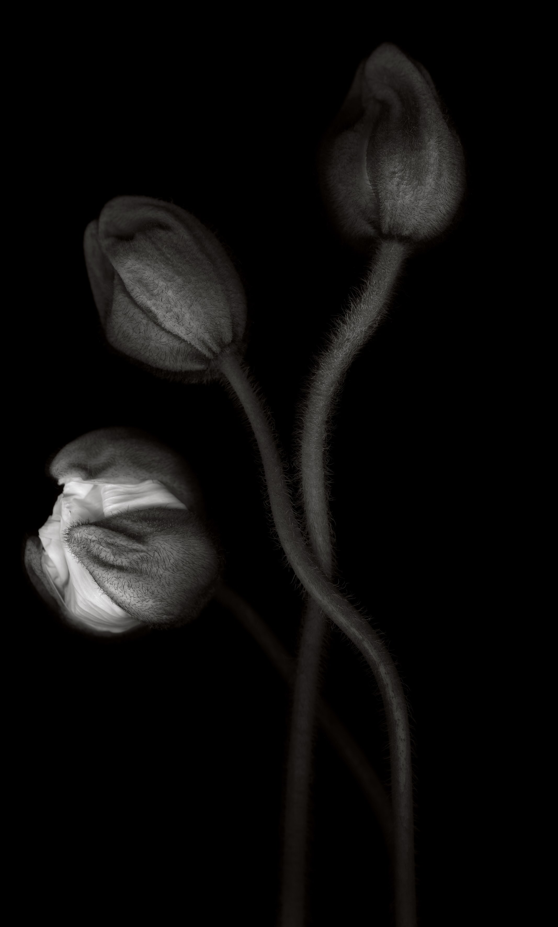 Le opere di Andrea Martiradonna sono stampe di grande formato, realizzate su una preziosa e ormai introvabile, carta artigianale giapponese, che riproducono specie vegetali e animali, immortalate con una attenzione maniacale, affinché ogni dettaglio di bellezza non perda, nel processo creativo, la sua restituzione più fedele. Ogni essere della natura in queste immagini, nel suo insieme o nel profondo di ogni sua piega, di ogni suo lato d' ombra, appare ipnotico, divenendo icona di sé stesso. I neri sono profondi e i bianchi sono assoluti, la luce è dosata sapientemente e diventa una guida riverente, che un po’ svela, un po’ nasconde, donando un aspetto imponente e maestoso anche al più umile soggetto, fiore, medusa o polpo che sia.