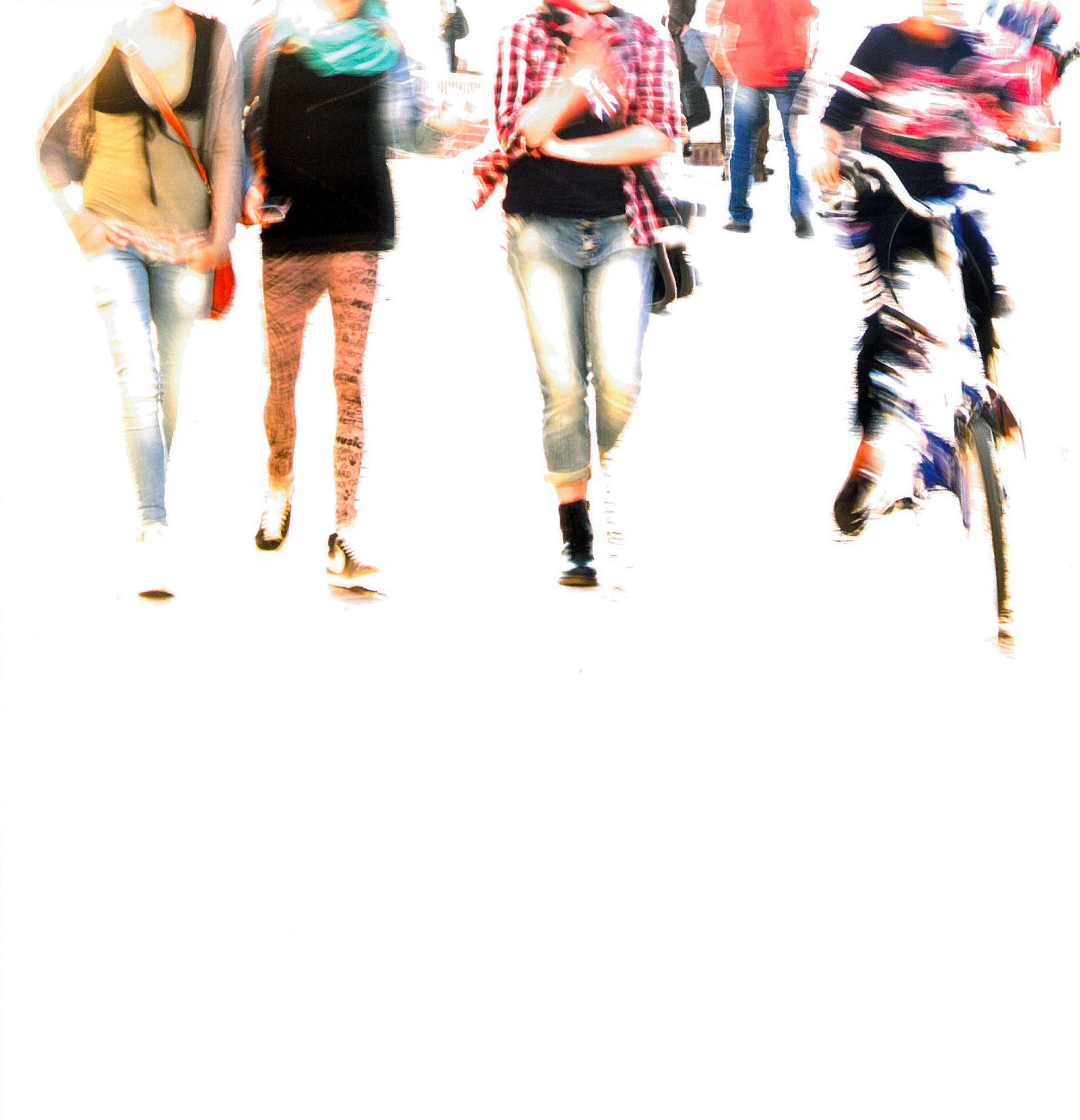 Fotografie che riprendono in modo del tutto originale usuali scorci urbani… come nelle precedenti mostre, l’Autore riesce a presentare la città solo con otturatore, focus e diaframma, sottraendo lo sfondo per cogliere le traiettorie lasciate dai suoi abitanti, ormai trasfigurati come la realtà