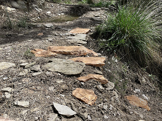 Delle pietre in bronzo sostituiscono altrettante rocce, ponendo al centro il tempo geologico capace di riposizionare l’uomo e la natura in un unico e assoluto ecosistema