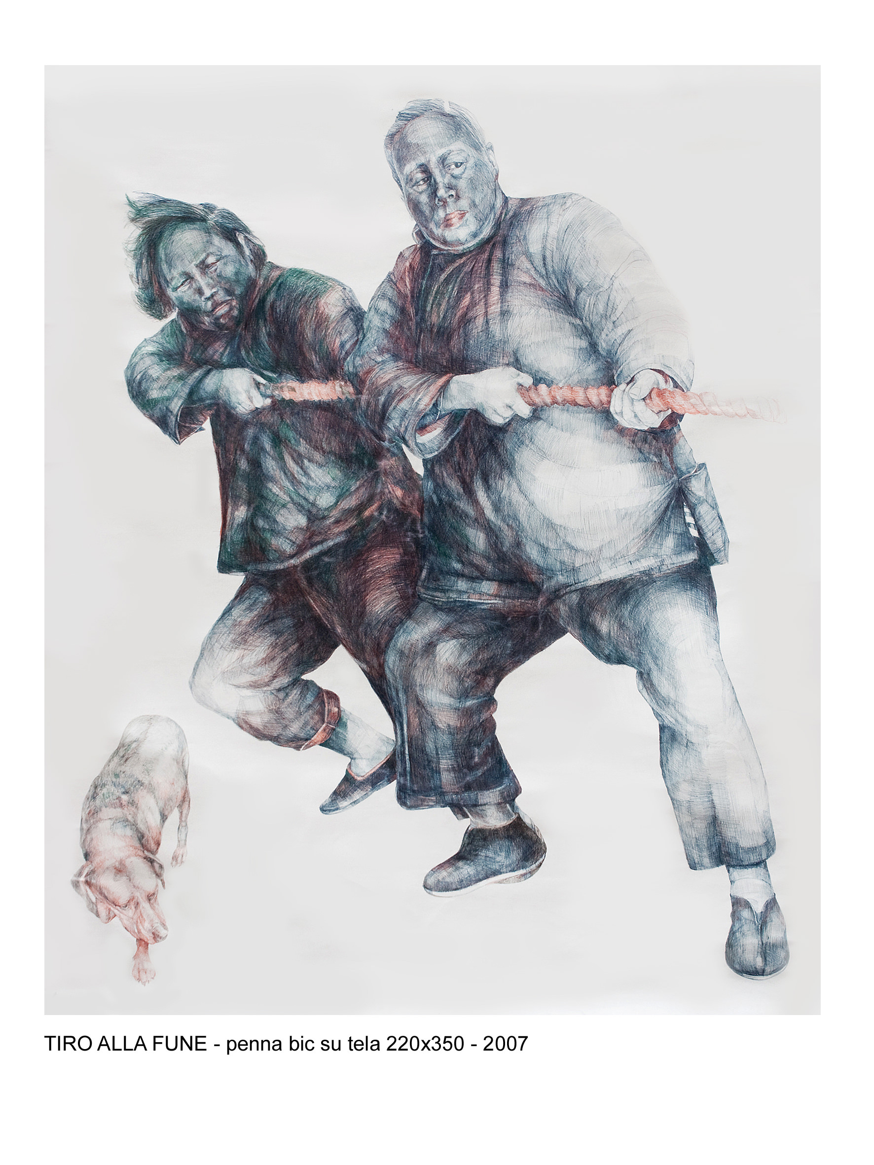 Qi è una parola letteralmente intraducibile nella nostra lingua, ma il termine che maggiormente esprime e identifica l’aspetto interiore del moto della creazione, è sicuramente soffio vitale. È nell’atto della pittura, nella consapevolezza del gesto, che rinveniamo quell’energia generatrice che trova la sua massima espressione nella traccia calligrafica imposta in modo nitido e preciso. Esiste un rituale dietro ogni movimento, una sorta di disciplina quotidiana che, segno dopo segno, organizza lo spazio e anima le figure. Il procedimento tecnico è di una tale maestria che pare quasi impossibile credere all’intervento diretto sulla tela, senza un disegno soggiacente che organizzi la superficie e ne guidi la mano. Il lavoro progettuale, la sperimentazione e l’esercizio costante sono ben espressi negli studi preliminari, che rappresentano l’essenza stessa dell’armonia compositiva.