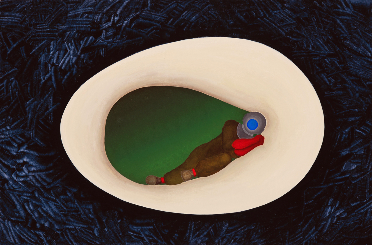 Con un approccio aristotelico, dunque carico e intriso d’inusuale pragmatismo per un macro tema così espanso e inafferrabile come quello della dimensione onirica, Pinchi, attraverso una narrazione maggiormente prosaica, si avvicina al micro tema del racconto del reale attraverso la rappresentazione di un individuo che sogna semplicemente ciò che vive, trasferendo sulla tela forme attratte che hanno una precisa collocazione e decodificazione, e che non si preoccupano di convivere insieme a forme figurative”.