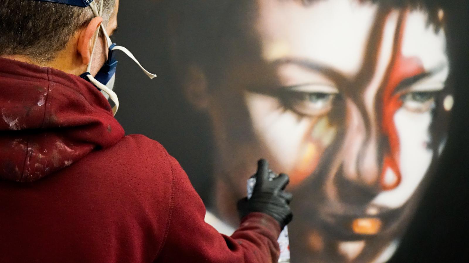 Andrea Ravo Mattoni (1981) nasce come writer e poi diventa street artist conquistando la fama con il recupero del classicismo nel contemporaneo e la riproduzione di opere di grandi artisti del passato attraverso l'uso della bomboletta spray e in questa mostra introduce il tema dell'intelligenza artificiale.