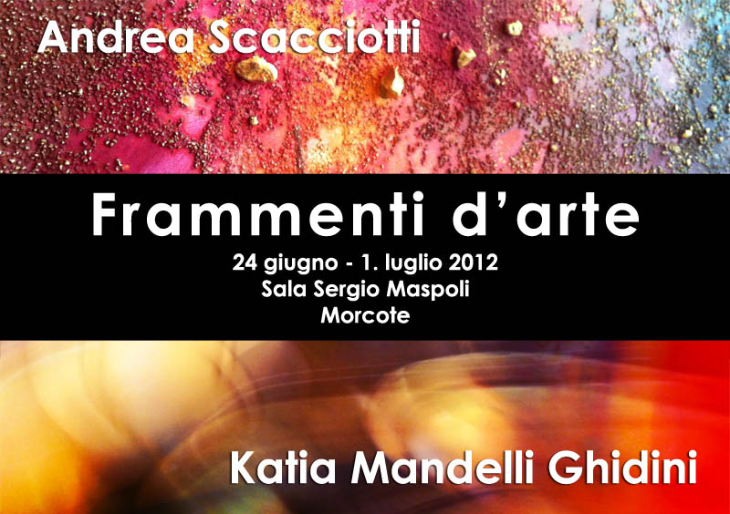 Domenica 24 giugno 2012 alle ore 17:00 presso la sala Sergio Maspoli del Municipio di Morcote si inaugura l’esposizione di due artisti contemporanei approdati all’arte astratta per strade e con tecniche diverse, Andrea Scacciotti con la pittura materica e Katia Mandelli Ghidini con la fotografia. Allieterà il vernissage con la sua voce, pianoforte e brani poetico-musicali la cantautrice Denise Misseri all'insegna di un pomeriggio dedicato all'Arte nella sue varie manifestazioni: i testi sono trattati come poesia, al punto che tra i brani proposti ve ne sono alcuni le cui liriche sono firmate da penne illustri: Mario Luzi, Guillaume Apollinaire, Emily Dickinson, nella bellezza delle loro lingue originali.