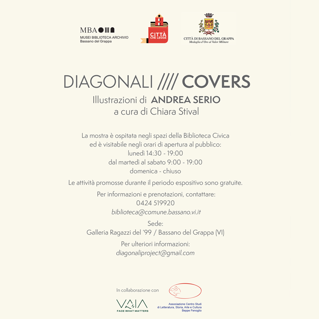 La quarta tappa della mostra DIAGONALI////COVERS sarà ospite a Bassano del Grappa (VI), negli spazi della Biblioteca Civica, da venerdì 15 marzo a sabato 11 maggio e propone interessanti attività per gli appassionati di illustrazione e di letteratura.