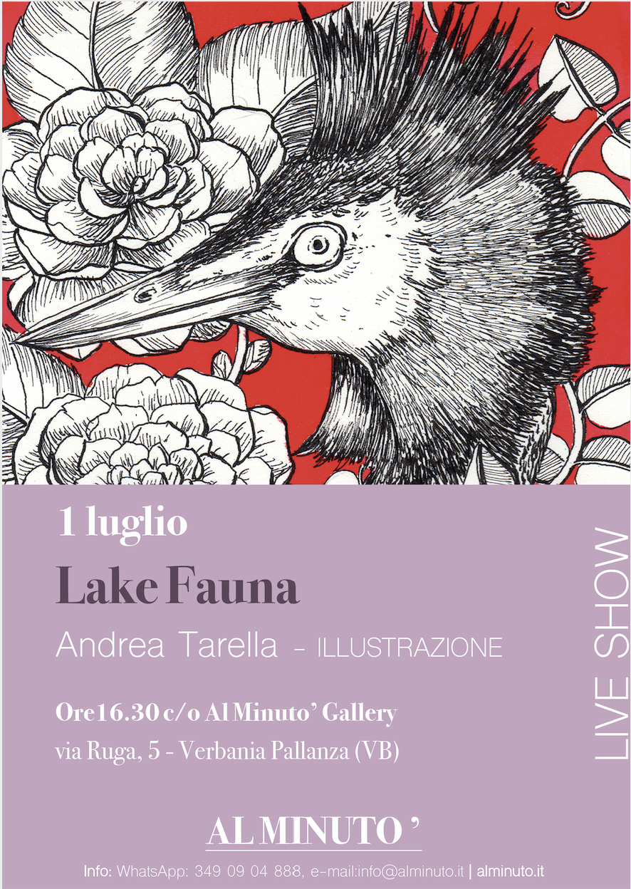 Il secondo appuntamento è dedicato a un LIVE SHOW ARTISTICO dal titolo “LAKE FAUNA” con l’illustratore ANDREA TARELLA rappresentato da Al Minuto’ Gallery.