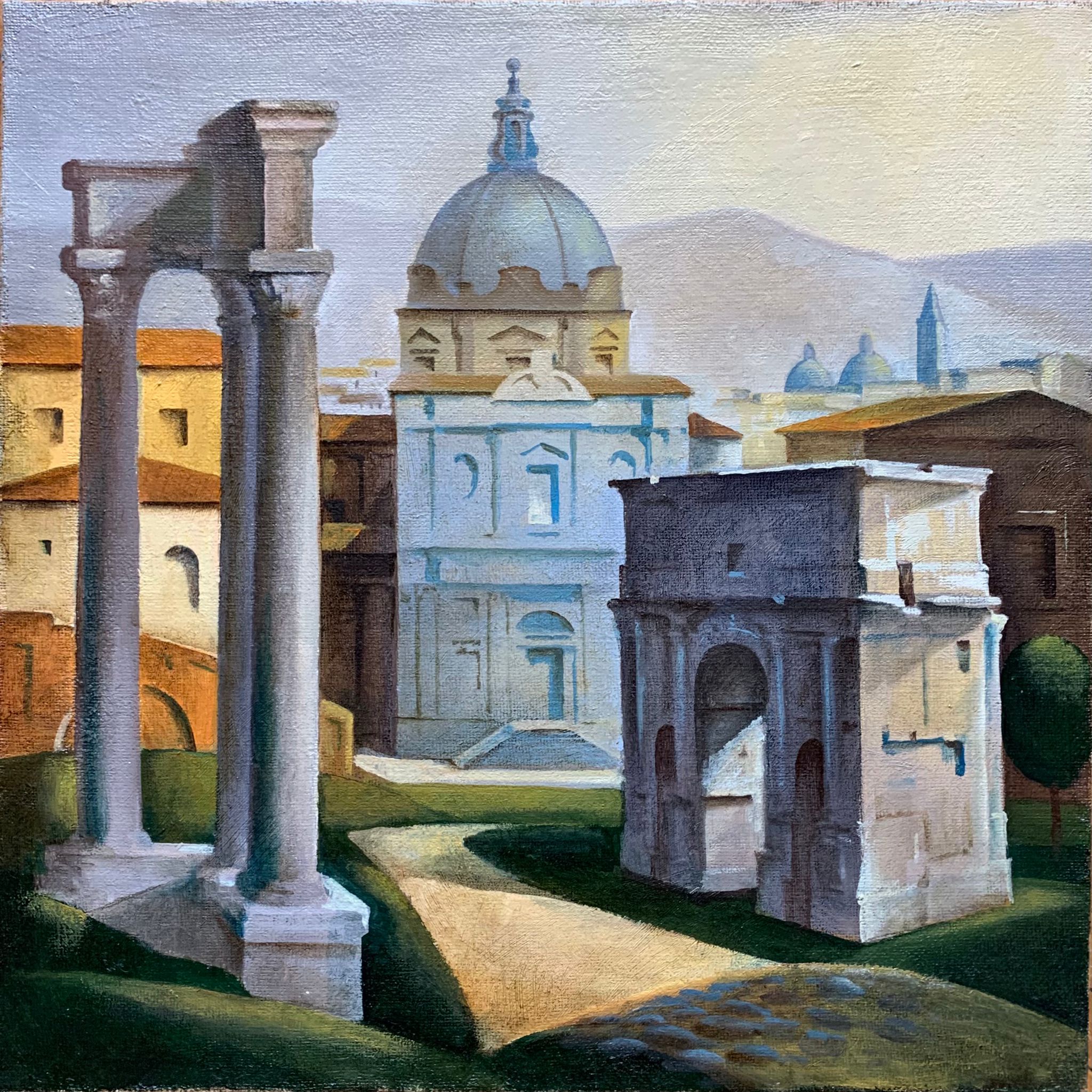 Erano gli anni ’90 e Andrey Protasov, con il Maestro Enzo Frascione Cattedra di Decorazione all'Accademia di Belle Arti di Roma, si trovavano a Via Giulia, a pochi passi da Via Ripetta, presso lo studio del Maestro Francesco Palpacelli della Cattedra di Architettura e modellistica della stessa Accademia. Protasov rimase affascinato dall’architettura del Palazzo della Cassa di Risparmio nei pressi di Piazza Cavour a Roma, la cui realizzazione venne completata dall’Architetto Palpacelli, poiché, a suo avviso, richiamava … le condensazioni di luci michelangiolesche come anche nell’edificio della Rinascente a Piazza Fiume, poco distante dal suo atelier. In seguito Andrej Protasov, per la sua particolare e attenta ricerca pittorica sulla luce di Roma, è stato invitato a tenere delle lezioni nelle aule dell’Accademia.