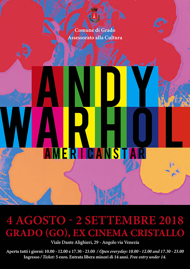 L’Assessorato alla Cultura del Comune di Grado, in collaborazione con l’agenzia MV Eventi di Vicenza presenta la mostra “Andy Warhol: american star” presso l’Ex Cinema Cristallo, dal 4 agosto al 2 settembre 2018.