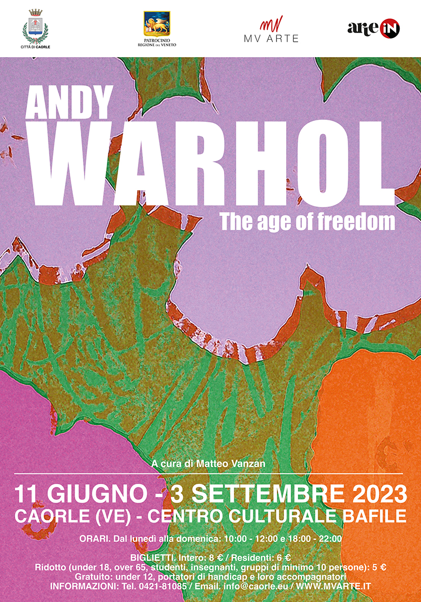 L'Amministrazione Comunale di Caorle, in collaborazione con l'agenzia MV Arte di Vicenza, presenta la mostra “Andy Warhol: the age of freedom” che si terrà presso il Centro Culturale A. Bafile dall' 11 giugno al 03 settembre 2023.