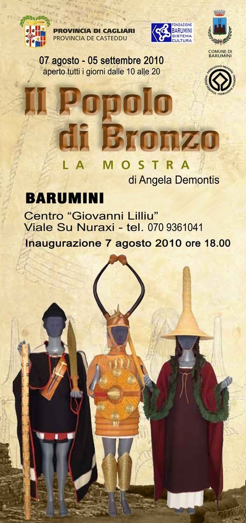 “Con questa esposizione si intende proporre una possibile ricostruzione di armi, abiti, accessori e utensili nuragici, realizzati con materiali e antiche tecniche di lavorazione, basata sulla rigorosa osservazione dei bronzetti iniziata con il libro “Il Popolo di Bronzo” “(Angela Demontis).