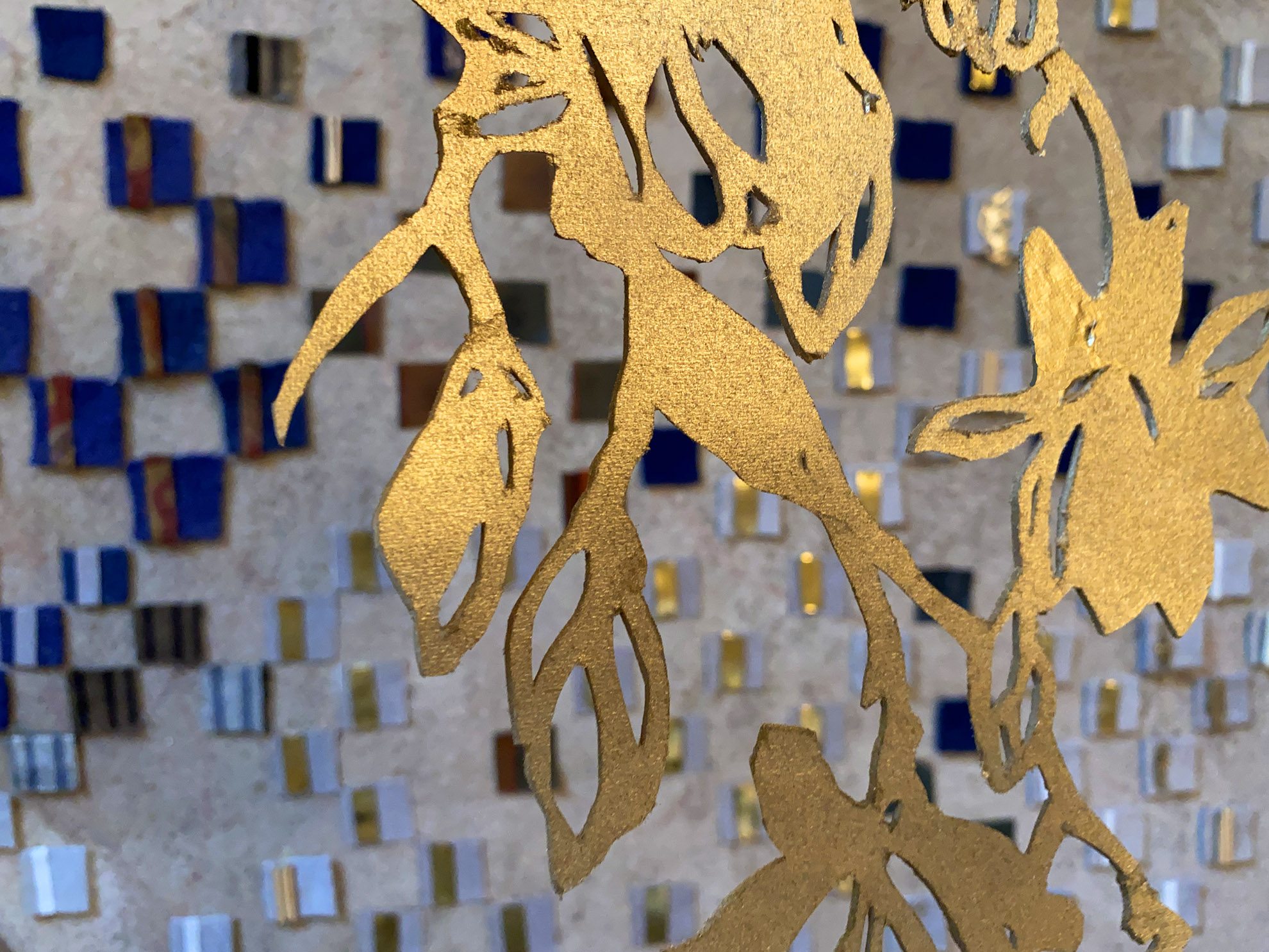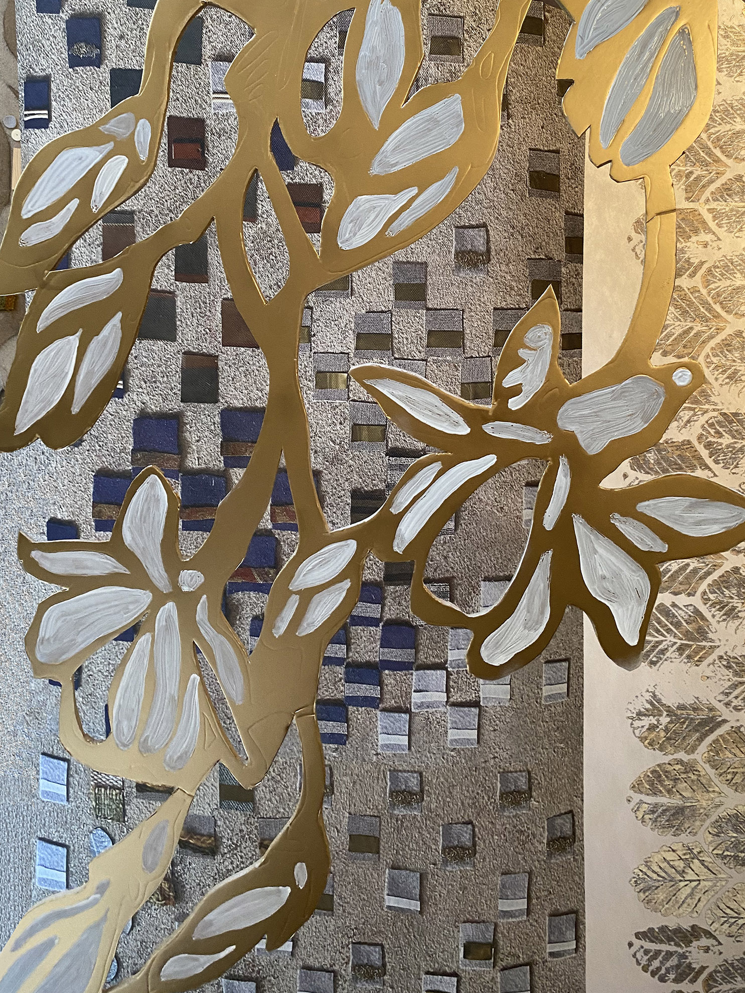Per antonomasia, l’artigiano, cavalca le epoche con le tecnologie del contemporaneo e qui è rappresentato da una carta da parati digitale, che l’artista designer Angela Florio compone, realizza e produce. Tale carta da parati è composta da tessere, che sono il rielaboro di materiale degli artigiani del circuito 5 vie, con visione metafisica e surrealista. Compaiono così animali, piante, e forme tipiche della giungla costruita interamente a mano da DecorAzione®, che da sempre realizza ciò che inventa.