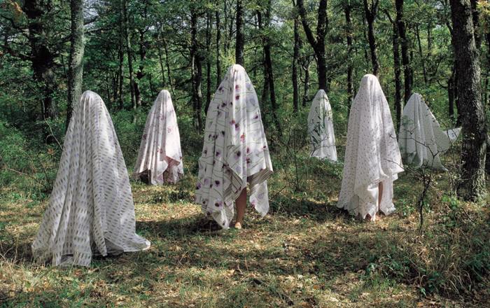 Il lavoro di Angela Rosati rappresenta un’arte di confine tra varie discipline: l’arte, la fotografia, il design di serie, l’artigianato. Nella Biblioteca Provinciale di Bari, alloggiata nello storico Monastero di Santa Teresa dei Maschi, per la sua personale Angela ricompone le figure di un racconto che nasce dalla ricerca del rapporto fra sé e la propria terra Un albero di terracotta alto tre metri, rivestito di boccioli arrampicati fino alla cima di agrifoglio, diventa l’allegoria di una cultura mitica – l’albero del Maggio di Accettura - che ancora scorre nella memoria ancestrale dei riti primaverili della Lucania. Terra nera di boschi, dove in un gioco di incontri l’occhio fotografico scopre le fioriture spontanee intorno al proprio corpo, natura fra altre, unione di forme ed essenze animate. Basta sfiorarsi per veder crescere piante di felci, aprirsi fiori di malvarosa, sbocciare papaveri oppiacei sulla pelle dei polsi, spuntare minuscole orchidee fra i capelli mentre dalle vene linfatiche della terra la vita fluisce da un corpo all’altro, dalle radici delle minuscole piante ai rami fioriti, alle dita, alle mani, al volto, allo sguardo. Il bosco dei fiori si trasforma in un giardino simbiotico che sa di rappacificazioni sensoriali