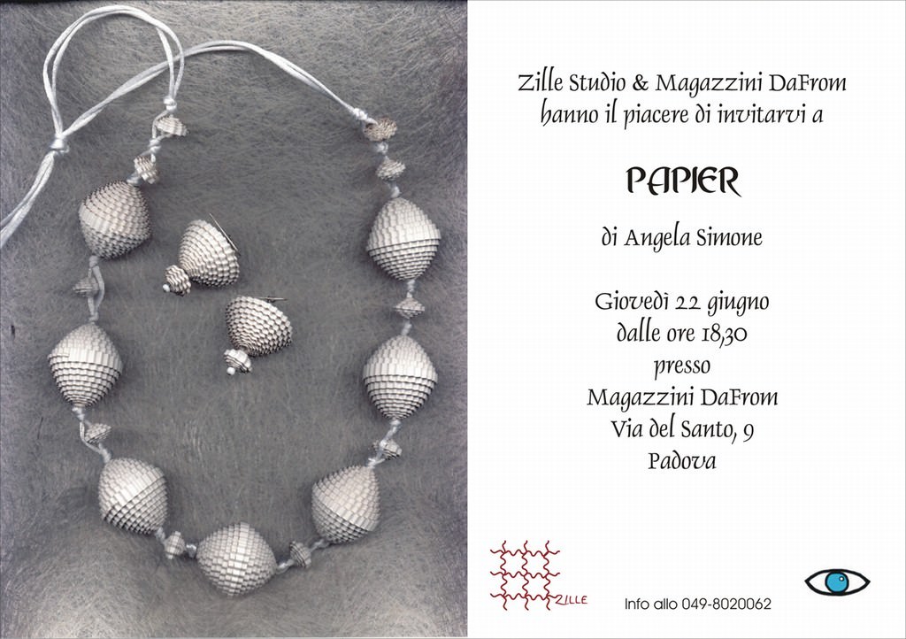 Per la prima volta Angela Simone presenterà a Padova, la sua collezione di collane di carta.
